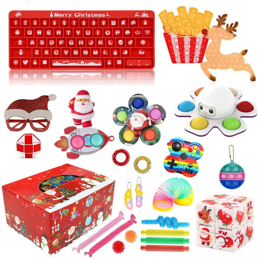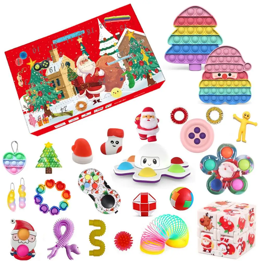 Детский календарь для празднования Нового года, 2021 фиджет-игрушка для детей, календарь с обратным отсчетом, рождественские игрушки, Рождественская игрушка с пузырьками, подарочная упаковка