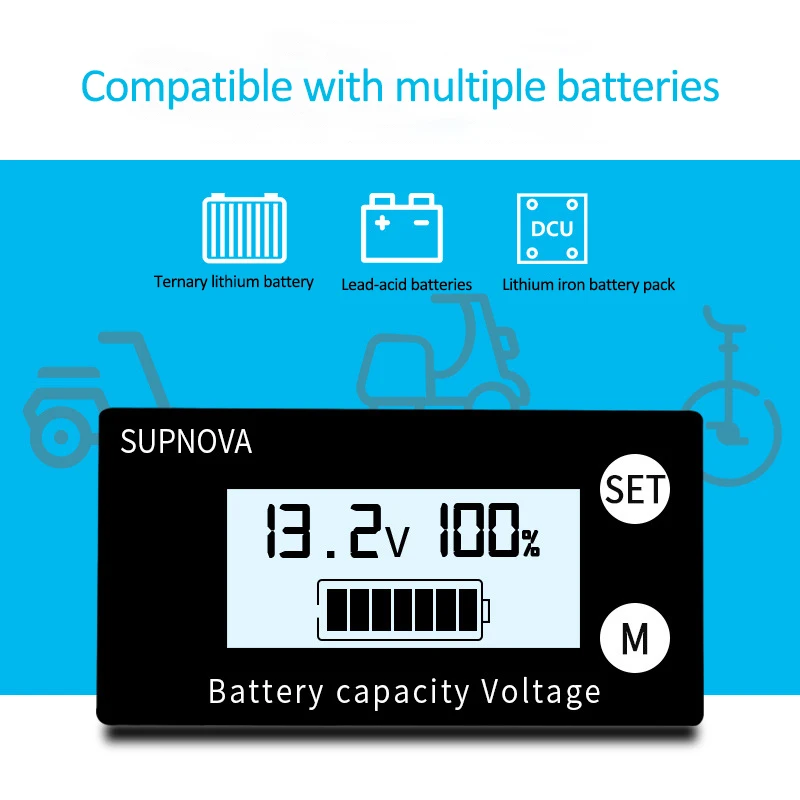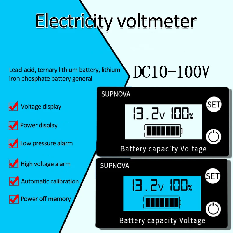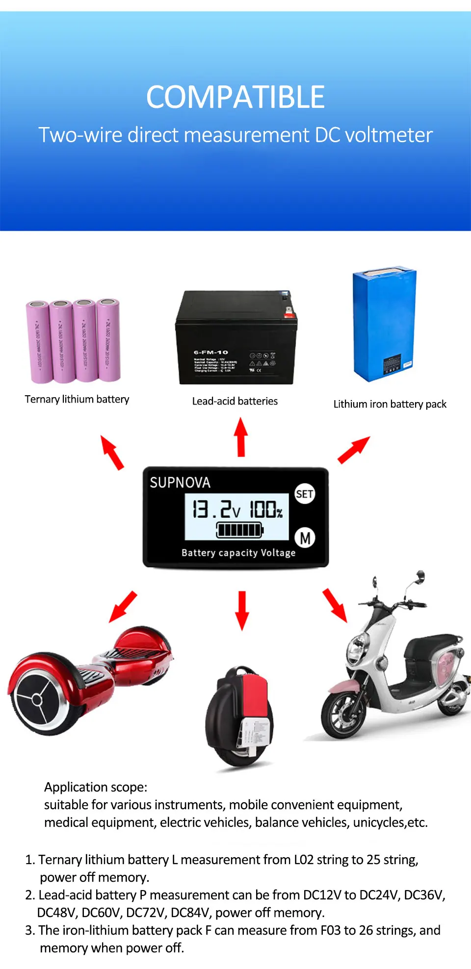 Батарея Ёмкость индикатор DC 8V-100V свинцово-кислотный литиевая LiFePO4 Автомобиль Мотоцикл вольтметр измеритель величины напряжения 12V 24V 48V 72V