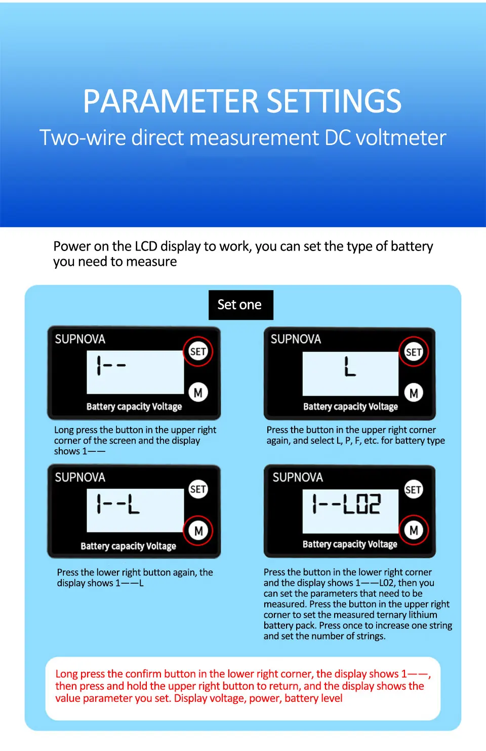 Состояние на 100% абсолютно новыйТип изделия: монитор батареиМатериал: АБС-пластикЦвет экрана: белый/синийДиапазон измерения напряжения: DC8V-100VРабочий ток: <15 мАТочность измерения: 1% ± 1 слово.Дисплей: ЖК-экранСкорость измерения: около 2 раз в секунду.Размеры: Approx.6.5x3.5x1.5cm / 2.6x1.4x0.6inРазмер установки: Approx.58x28mm / 2.3x1.1inДлина свинца: 20 смРуководство по эксплуатации:1. Тройной литиевый аккумулятор L измерение от строки L02 до 25 струн. Отключение питания с памятью.2. Свинцово-кислотная батарея P может быть от DC12V до DC24V, DC36V, DC48V, DC60V, DC72V, DC84V. Память полосы питания3. Железный литиевый аккумулятор F может измерять шнур F03 до 26 струн. Память полосы питания(Если вам нужны подробные инструкции по установке, пожалуйста, свяжитесь с нами)