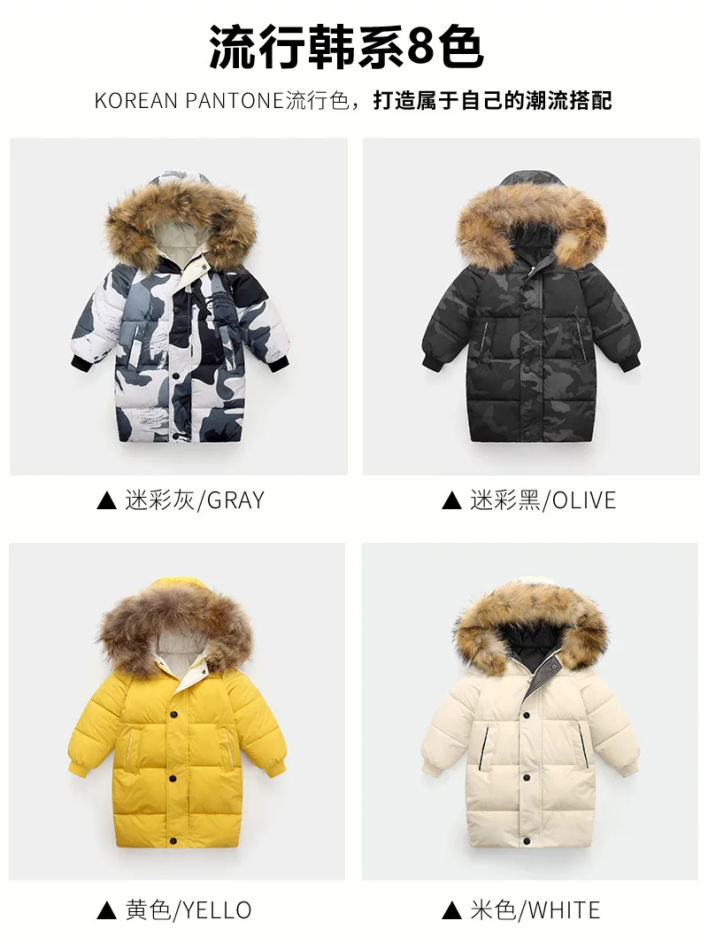 Детская куртка с натуральным мехом для мальчиков и девочек, детская верхняя одежда, парки, зимний длинный комбинезон, пуховик с подкладкой, теплая Новинка 2022