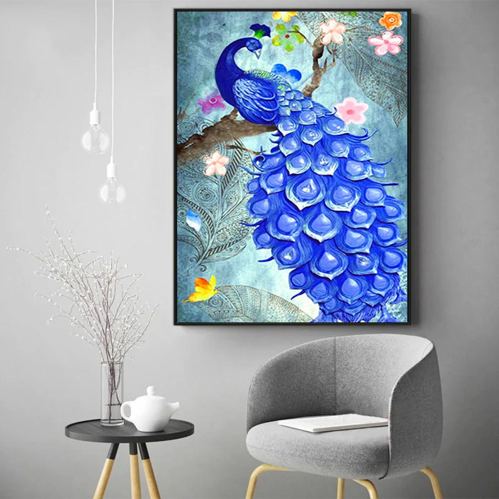 Алмазная мозаика, полный макет:Алмазная вышивка павлина