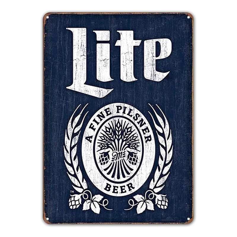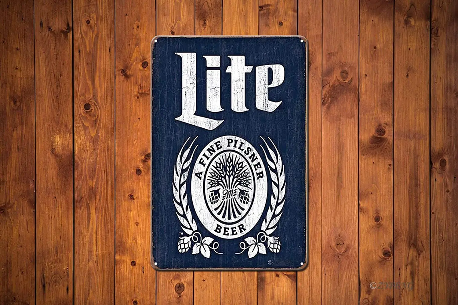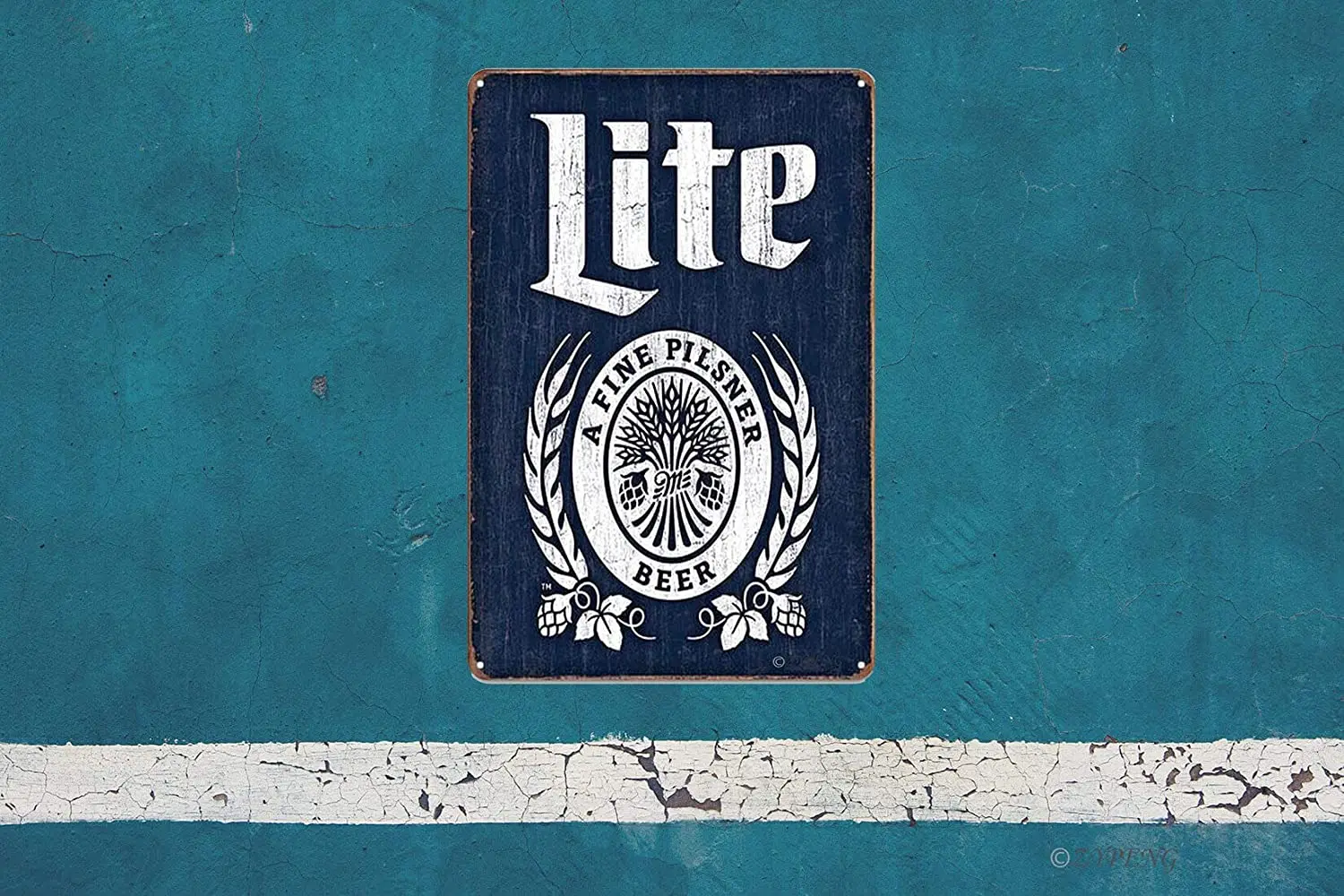 Металлический жестяной ретро знак Миллер Lite пивоваренный пивной флакон с логотипом выветриваемый винтажный Бар Паб Настенный декор 8x12 дюймов