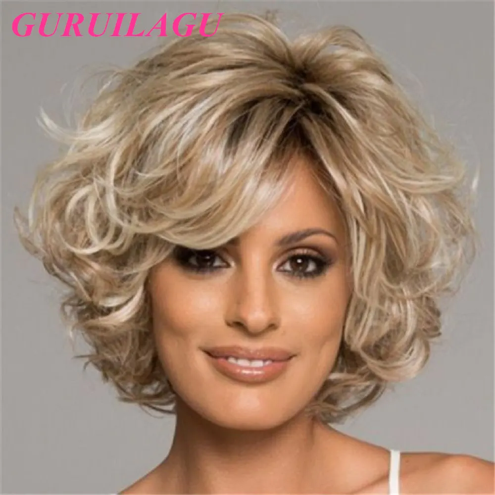GURUILAGU Короткие вьющиеся парики для женщин хайлайтер блонд парик с челкой термостойкие волосы синтетические волосы женский парик