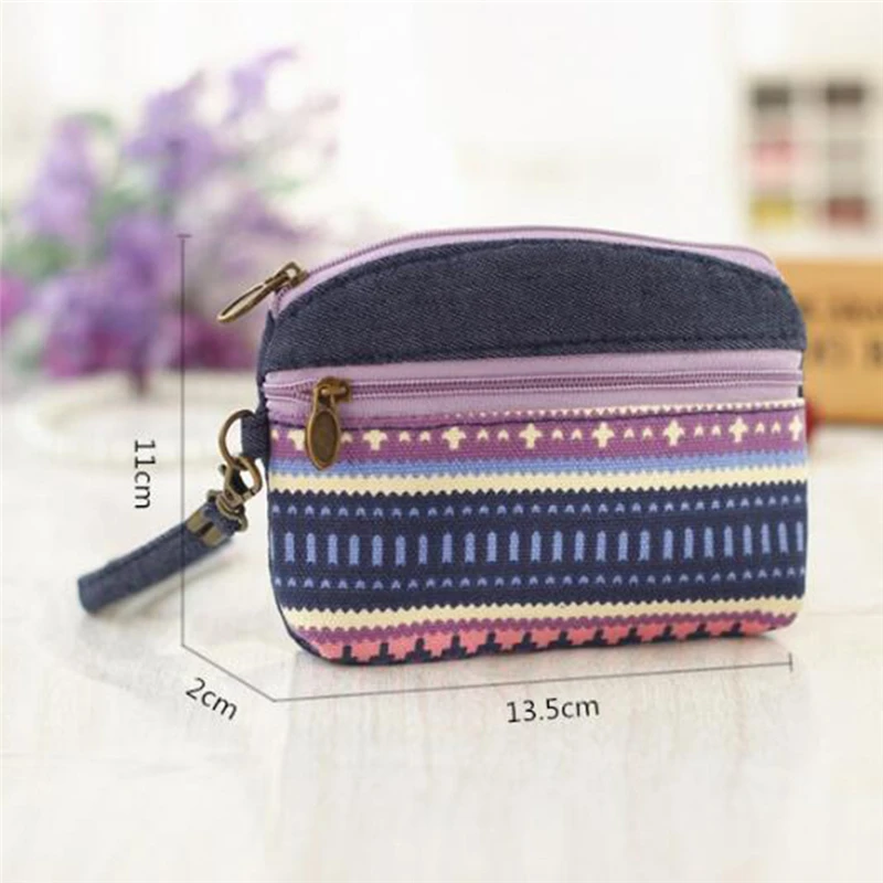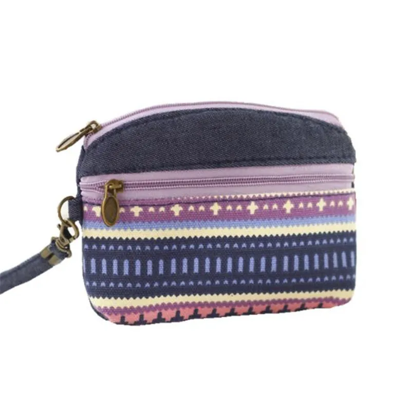 Этнический холщовый мини-кошелек, женские кошельки с двойной молние...