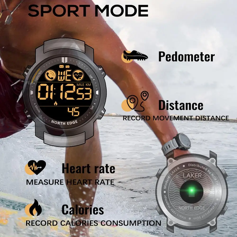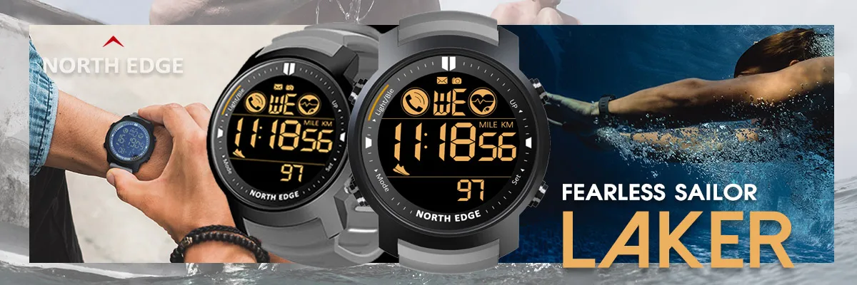 NORTH EDGE LAKER Смарт-часы для мужчин фитнес-Спорт Водонепроницаемый 50 м Шагомер монитор сердечного ритма во время сна Смарт-часы для iOS Android