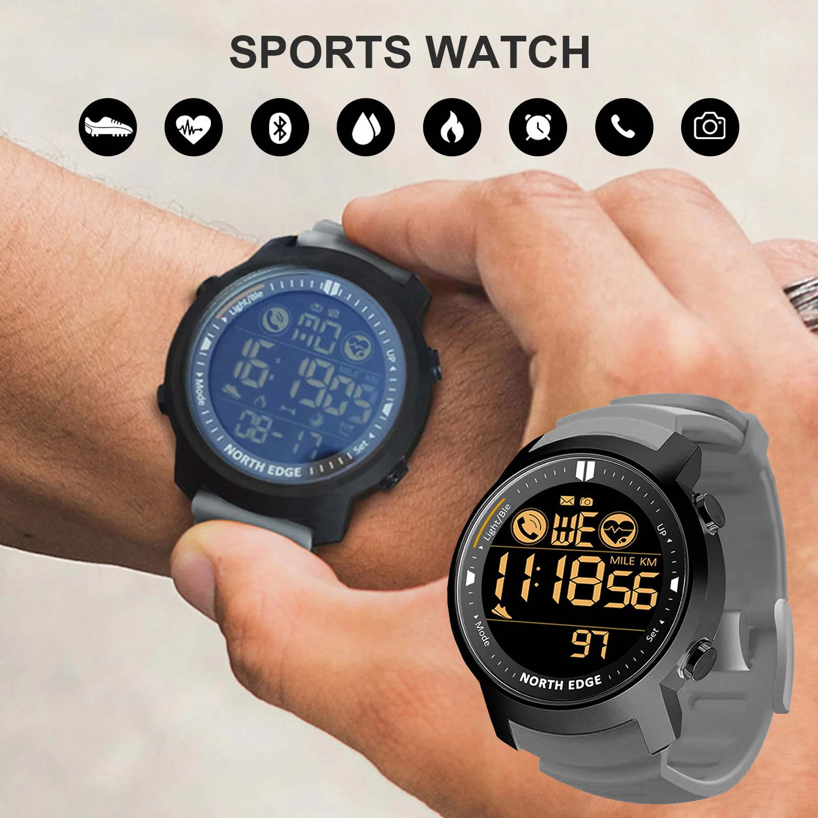 Часы NORTH EDGE мужские цифровые, спортивные водонепроницаемые в ст...