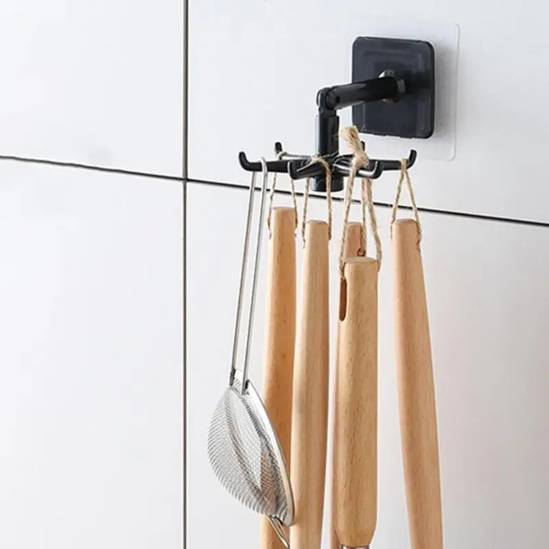 Вращающийся на 360 градусов кухонный органайзер, 6 крючков для лопатки, ложки, вешалка для хранения, держатель, настенная стойка для удобства кухни
