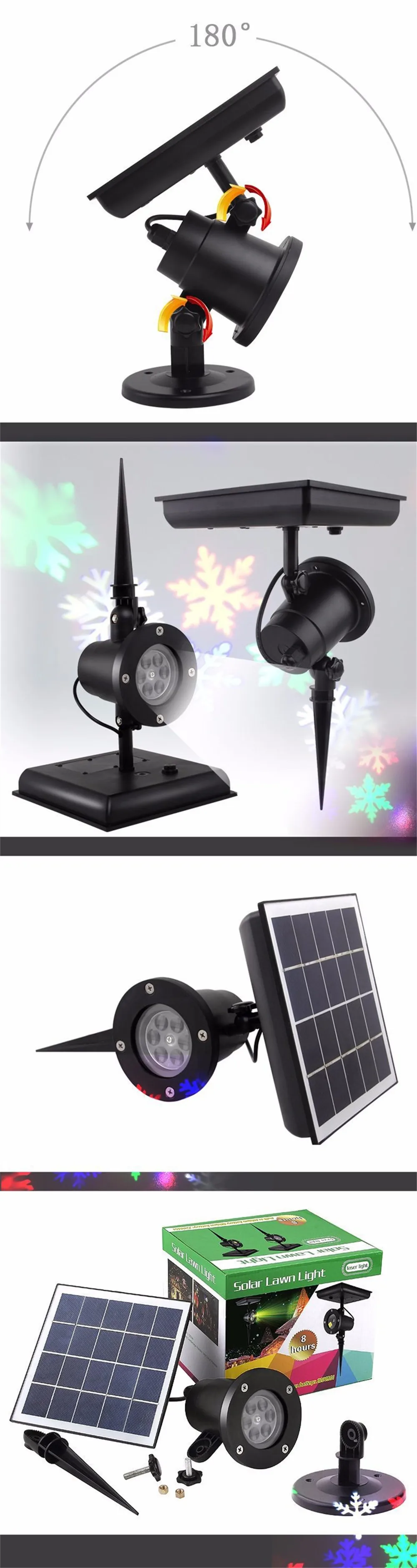 Speification для модели солнечной энергии:Материал: нержавеющая сталь и АБС-пластикМощность солнечной панели: 4 в/80 мАТип лампы: светодиодныйВремя зарядки: ≥ 8 часовВремя работы: Полная зарядка может быть освещена около 4-6 часовВодонепроницаемость: IP65 Функция:Модернизированный Светодиодный светильник снежинки для садаИзготовлен из прочной и стильной нержавеющей сталиНаземный светильник на солнечной батарееПоставляется с автоматическим датчиком заката до рассветаПроводка не требуется и безопасна для использования вокруг детей и домашних животныхСветодиодный светильник цвет: красный + синий + зеленыйДля модели штепсельной вилки EU/US/UK/AUSpeification:1. Мини-размер2. Звездная снежинка шаблон Водонепроницаемый сценический светильник3. Лазер: белый лазерный светильник/многоцветный4. Водонепроницаемый: корпус IP65, адаптер питания IP445. Длина кабеля: 5 м6. Внешний цвет: черныйНаши продукты подходят для: диджеев, полос, баров, пабов, клубов, катков для катания на роликах, КТВ, семейные вечерние дни, день рождения, праздники, сады, парки, фасады, праздничное дерево, фестиваль, торговый центр, магазин, магазин и другое место.Применение мест: праздники, сады, парки, фасады дома, праздничные деревья, дискотека, бар, KTV, клуб, семейные вечерние, вечерние дни рождения, магазин. Посылка включает в себя:1 * Водонепроницаемый сценический светильник1 * Руководство пользователя
