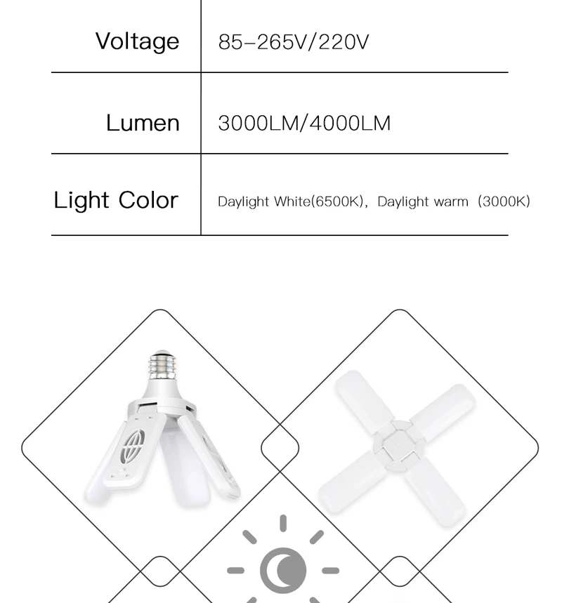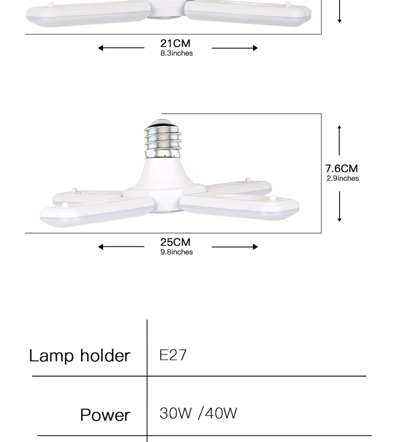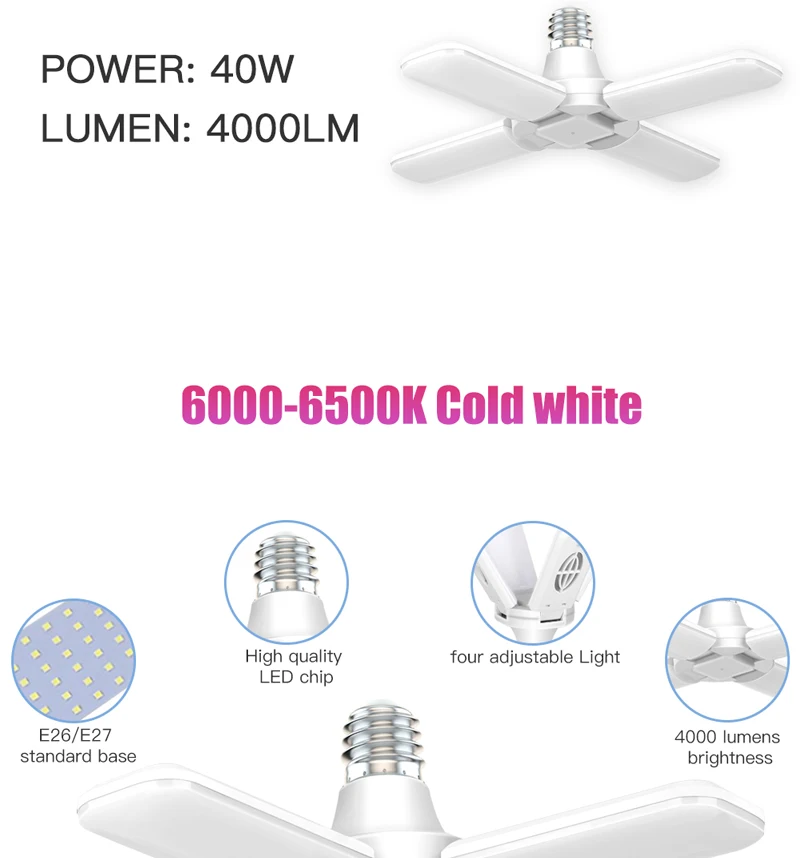 Деформируемая лампа для гаража, складной потолочный светильник для высоких промышленных помещений с 34 листьями, 30 Вт40 Вт, E26, 3000 люмен