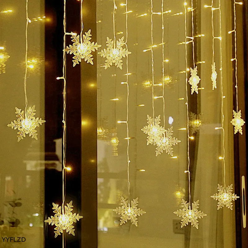 Светильник да-занавес в виде снежинок, украшения для новогодней елки, Рождественское украшение для дома, Рождественский Декор, новый год 2022, Рождество 2021