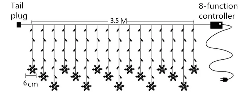 3,5 м гирлянда со снежинками, светодиодная гирлянда-занавеска, улич...
