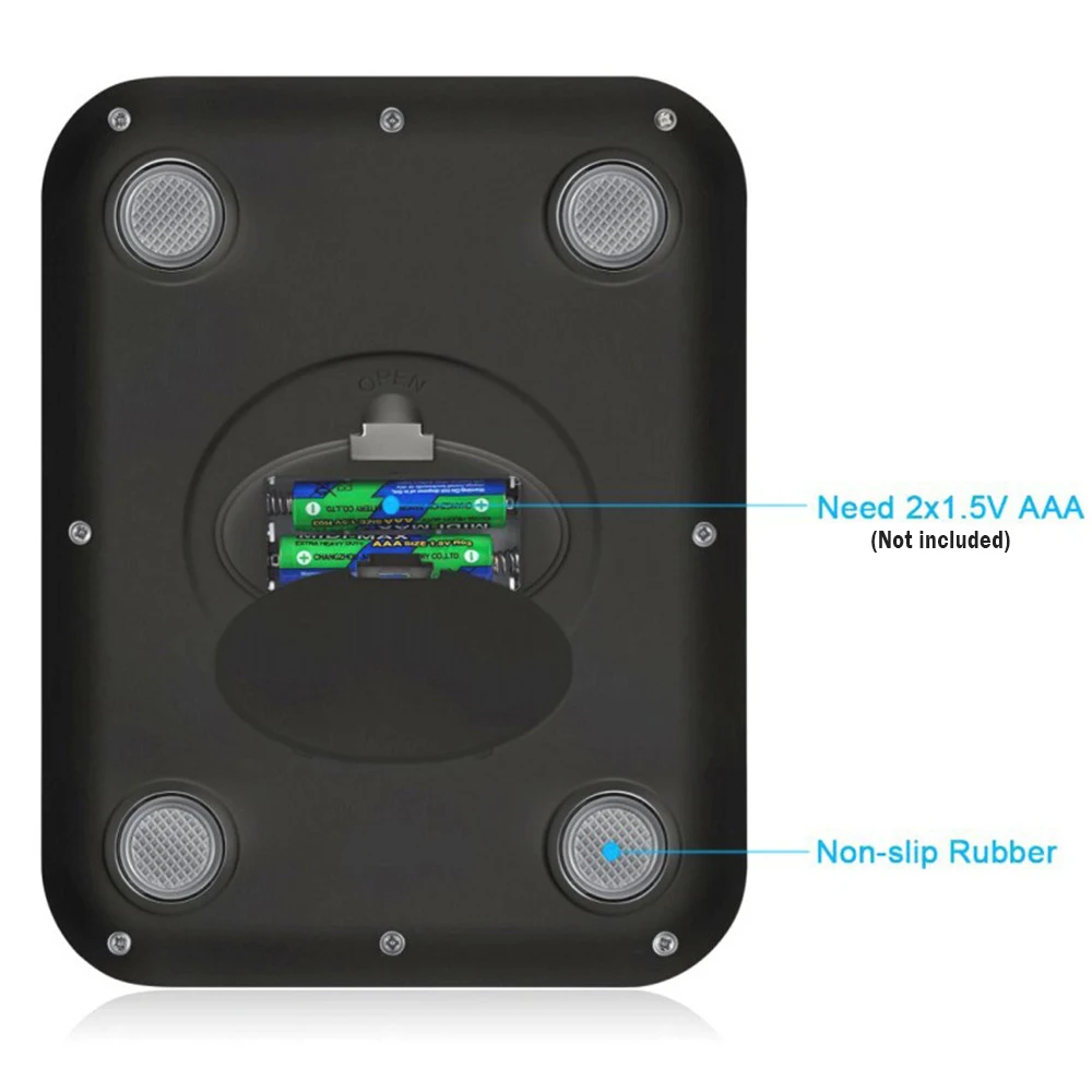 Весы имеют легкий для чтения дисплей с подсветкой, оставаясь 30 секунд для легкого чтения. Для экономии энергии весы также оснащены функцией автоматического отключения, что позволяет шкале выключить через 2 минуты бездействия. Не смешивайте новые и использованные батареи для питания устройства