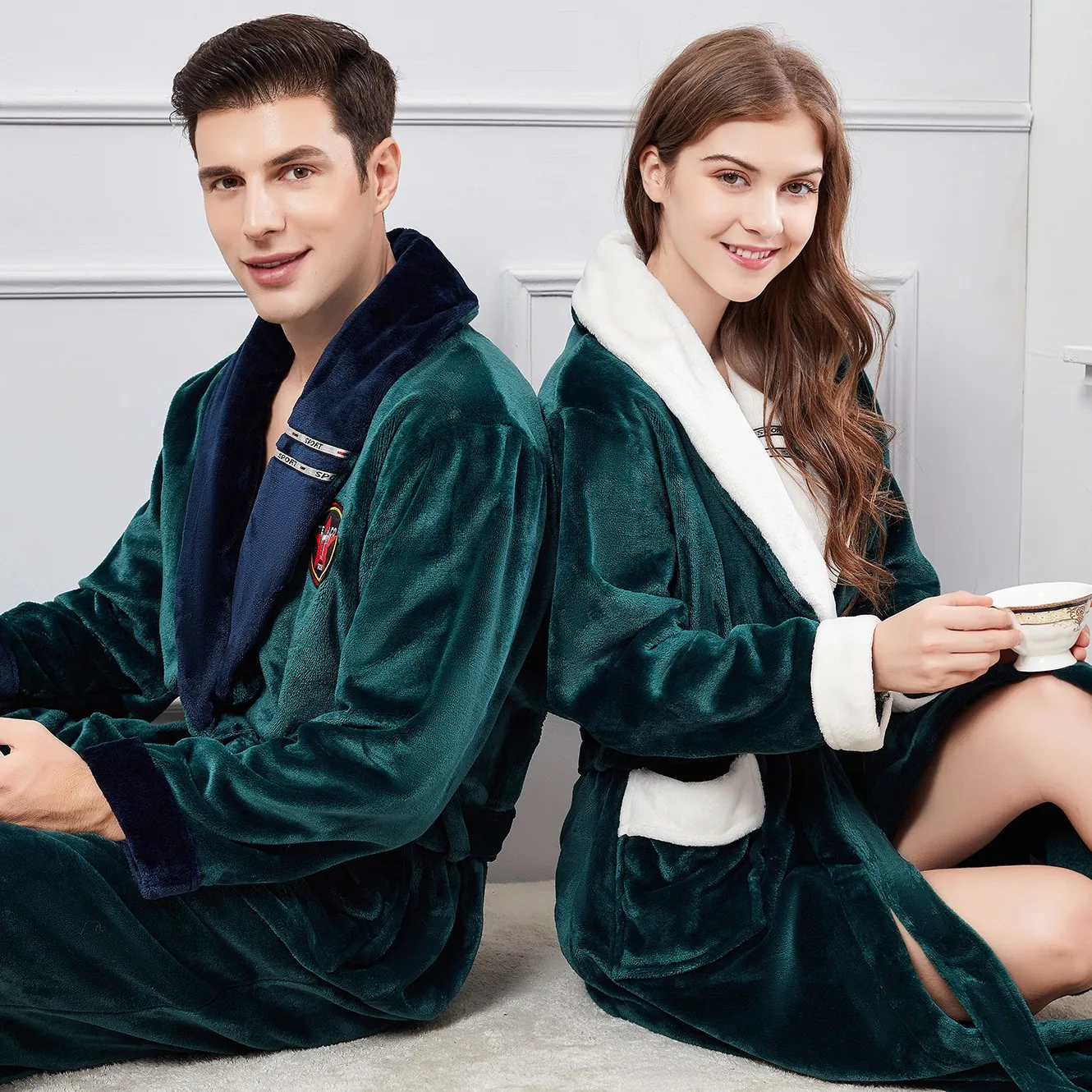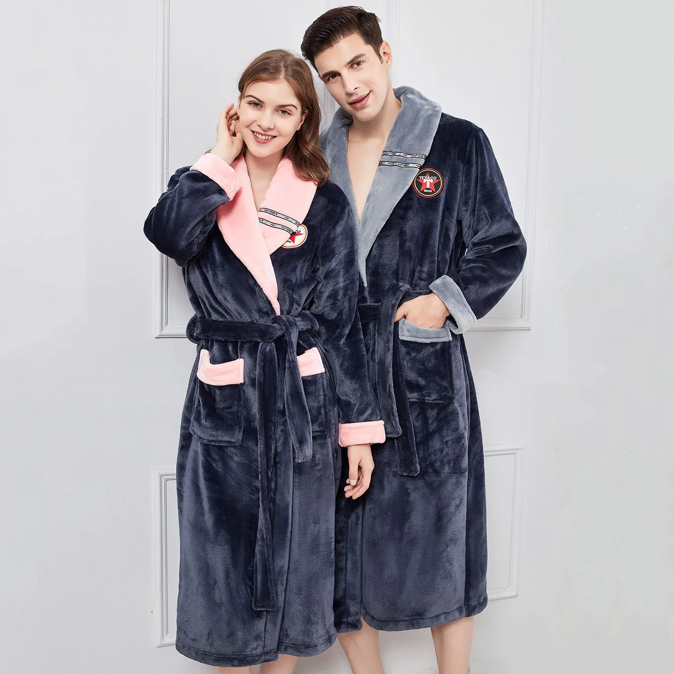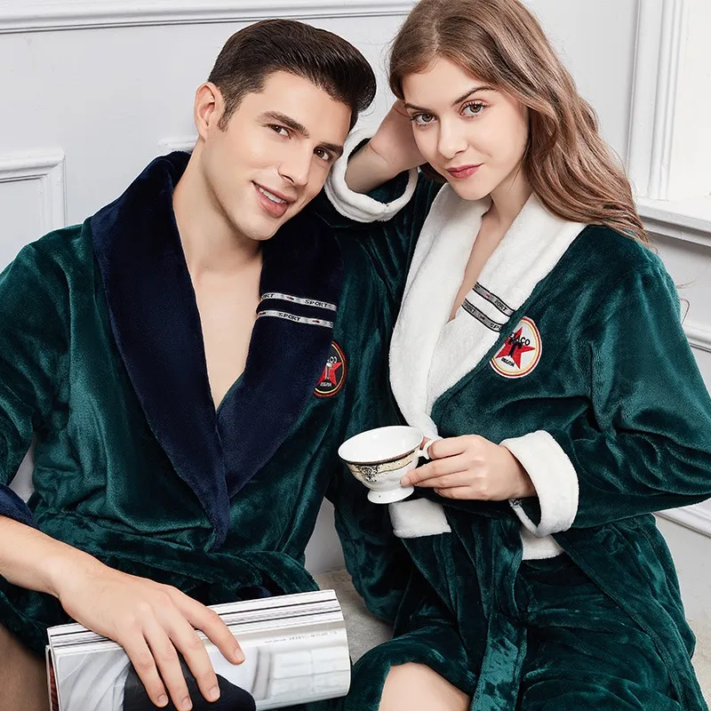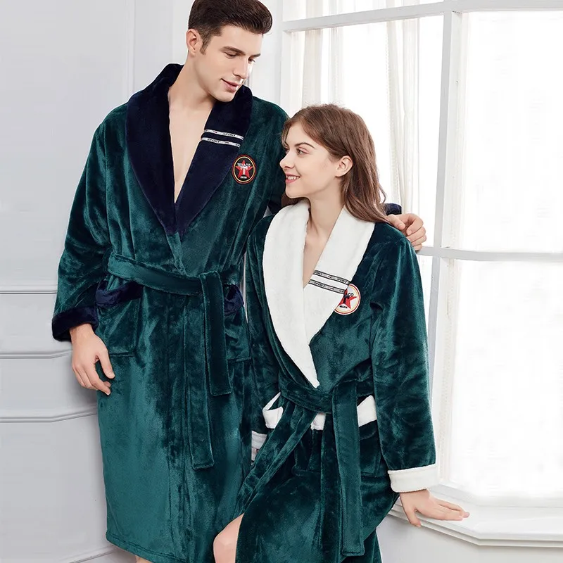 Фланелевый Халат-кимоно для пар, халат, зимняя теплая длинная ночная рубашка, одежда для сна, ночная рубашка из плотного кораллового флиса, домашнее платье