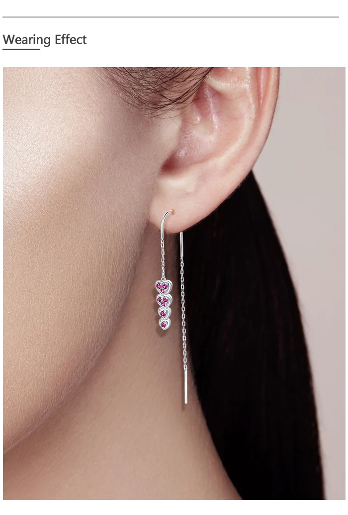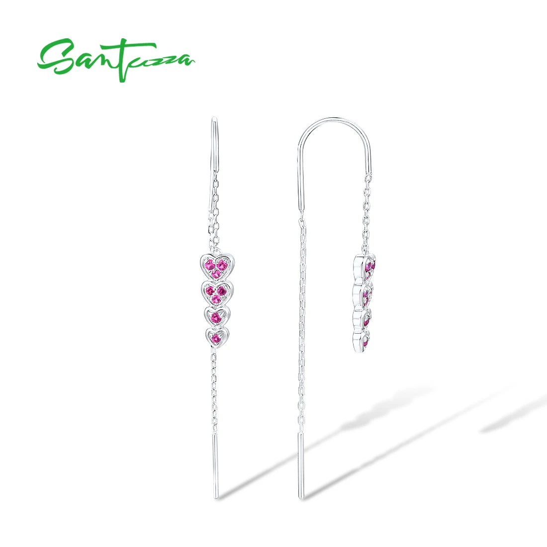 SANTUZZA подлинные 925 Висячие серьги из серебра 925 пробы для женщин Lab созданы Ruby Heart висячие серьги Модные ювелирные изделия для вечерние