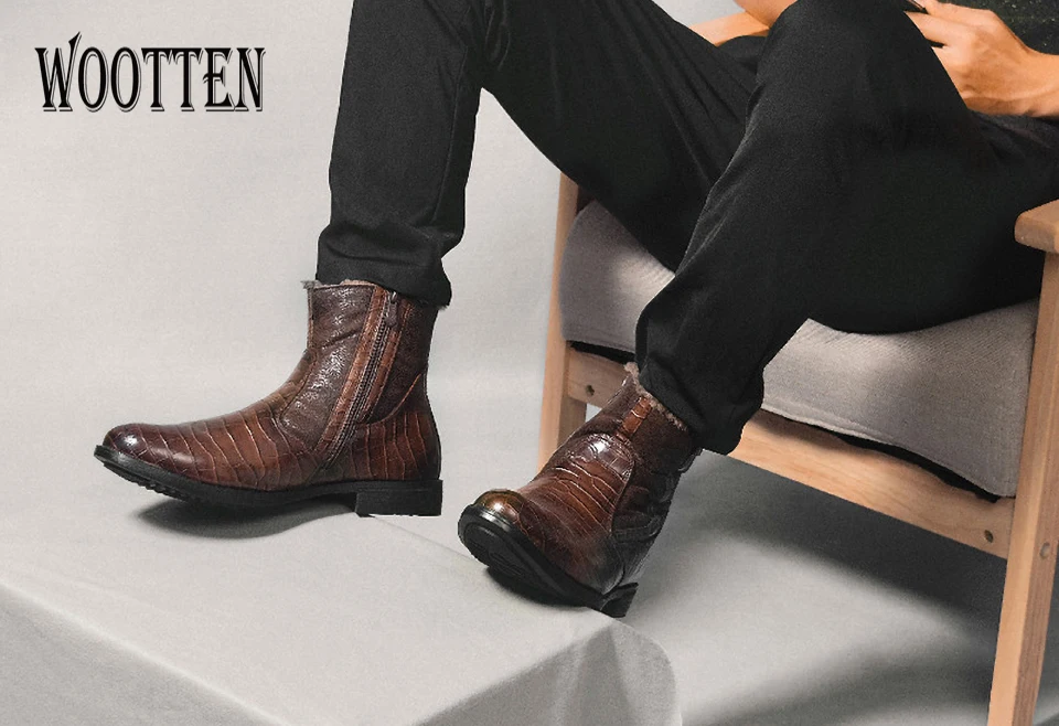 Брендовые мужские зимние ботинки в стиле ретро, кожаные ботинки, Брендовые мужские зимние ботинки Wootten размеров 40-45, зимние ботинки ручной работы для мужчин # DM5266C1