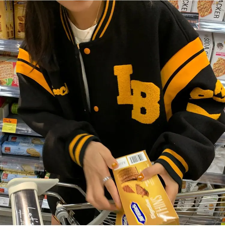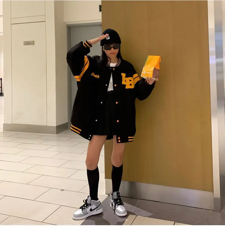 Женская бейсбольная куртка, повседневная свободная форма в Корейско...
