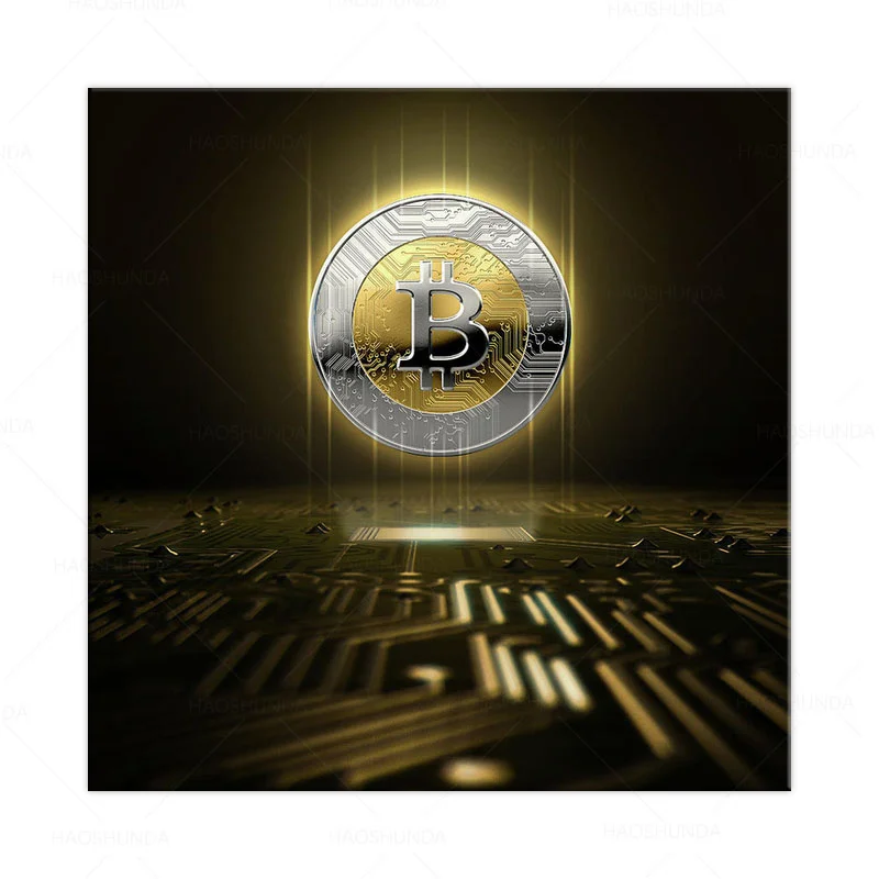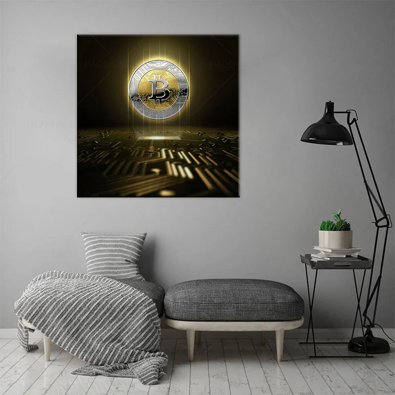 Финансовая коллекция ценности Биткоин картина на стену Художественная печать на холсте неоновая светящаяся Картина золотой постер прикроватный декор для офиса