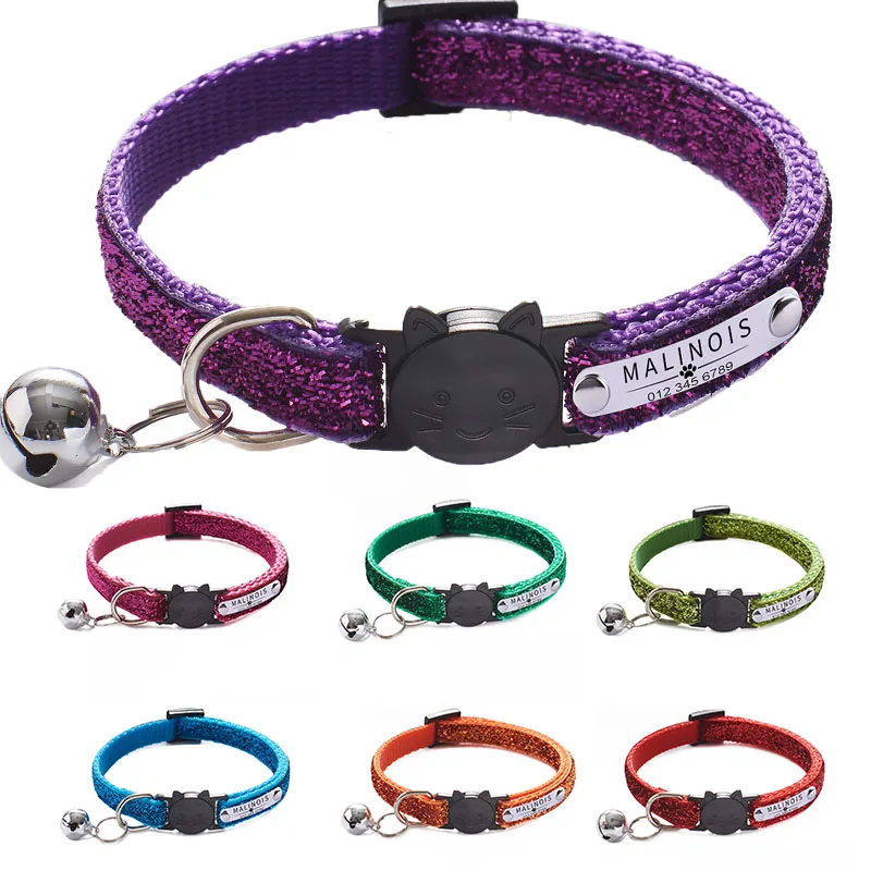Ошейник для кошек с надписью на заказ, модный регулируемый, с блестками, для котят, аксессуары для кошек