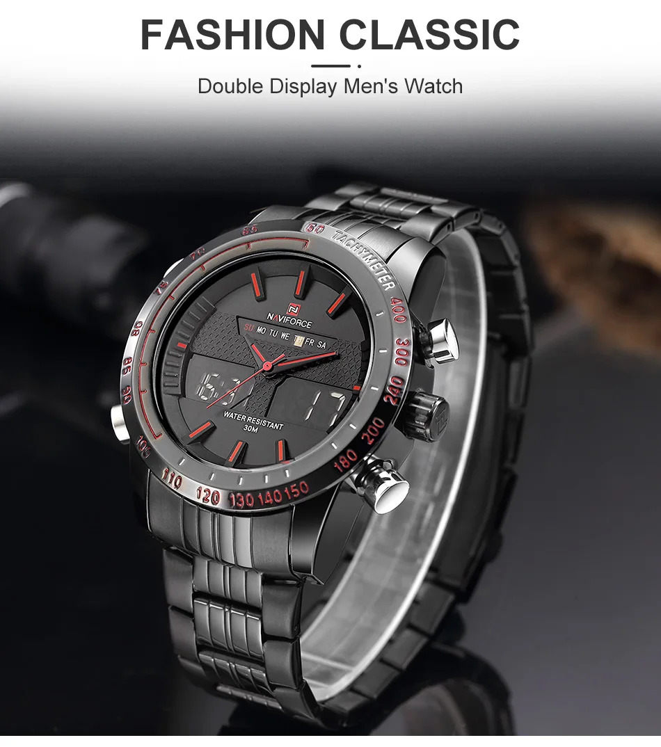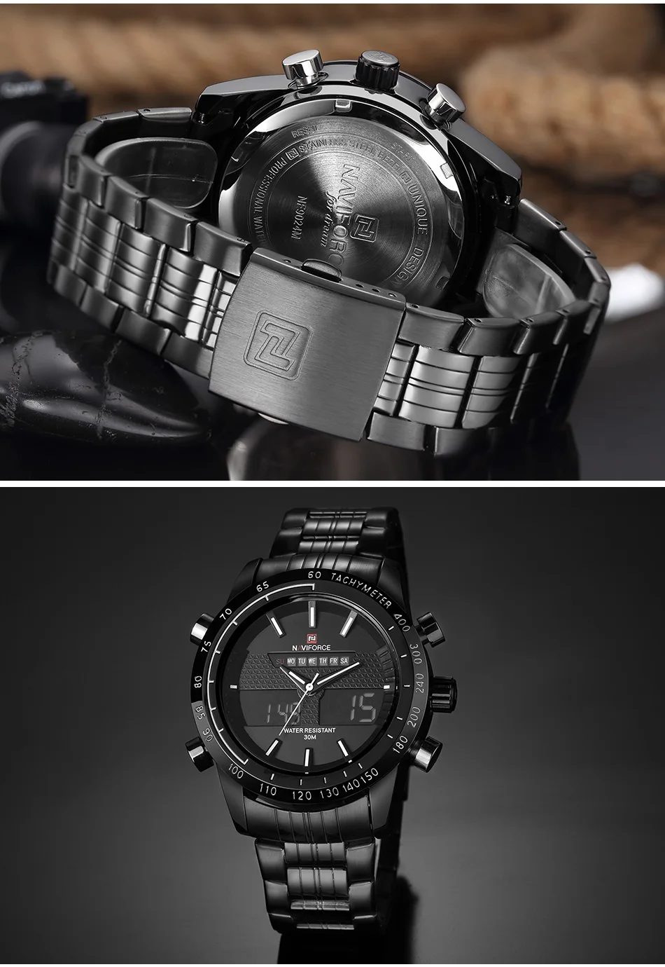 NAVIFORCE мужские модные спортивные часы, кварцевые, мужские, водонепроницаемые наручные часы из нержавеющей стали, мужские часы