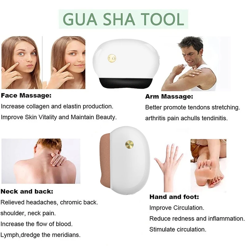 Простой в использовании:Начните с чистого лица и используйте утром или на ночь после нанесения масла, маски или увлажняющего крема, а затем Нанесите средство Gua Sha по коже. Начните с лба, затем поработайте над лбом и пройдите в область глаз, потому что стоки здесь. Затем [продолжай] спускайся [остальное лицо]Молодежная кожа с бюджетом:Лечение лица может сжечь сотни долларов. Но если вы ищете что-то, что даст реальные результаты (без разрыва банка), Gua Sha-это обязательная попытка.Старинный массажный инструмент, Восстановленный:Обновите свой уход за кожей с помощью hot stone electric gua sha. Наш массажер gua sha, основанный на древней китайской технике исцеления/антивозрастного массажа, добавляет современные методы ухода за кожей, чтобы еще больше увеличить пользу от ухода за кожей.Мощный универсальный косметический массаж:Очищает кожу и мягкую ткань с дополнительными преимуществами тепла, вибрации и естественной энергии. Стимулирует кровообращение, расслабляет и разглаживает напряженные мышцы лица/шеи/челюсти, снимает пышность и повышает эластичность кожи. Верните молодость вашей кожи.Продуманный дизайн:Горячий камень Gua Sha имеет плавные изгибы, которые легко скользят по контурам вашей кожи. Наконечник используется для массирует триггерную точку для разглаживания и расслабления напряженных зон.Портативный и легкий для использования в дороге:Легко храните инструмент Гуа-Ша массаж в косметичке для быстрого массажа лица в любое время и в любом месте. Легко заряжается с помощью USB-порта.