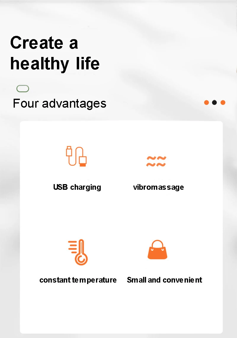 1. Зарядка через USB2. Вибрационный массаж3. Умный контроль температуры4. Маленький и удобный