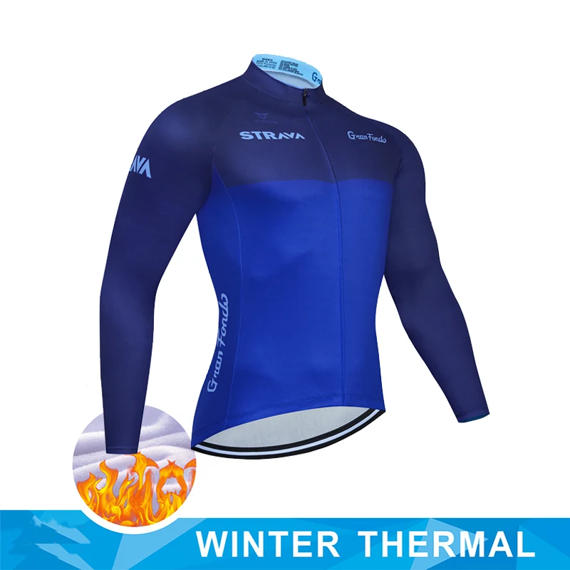 Зимний теплый флисовый трикотажный комплект для велоспорта STRAVA, ...