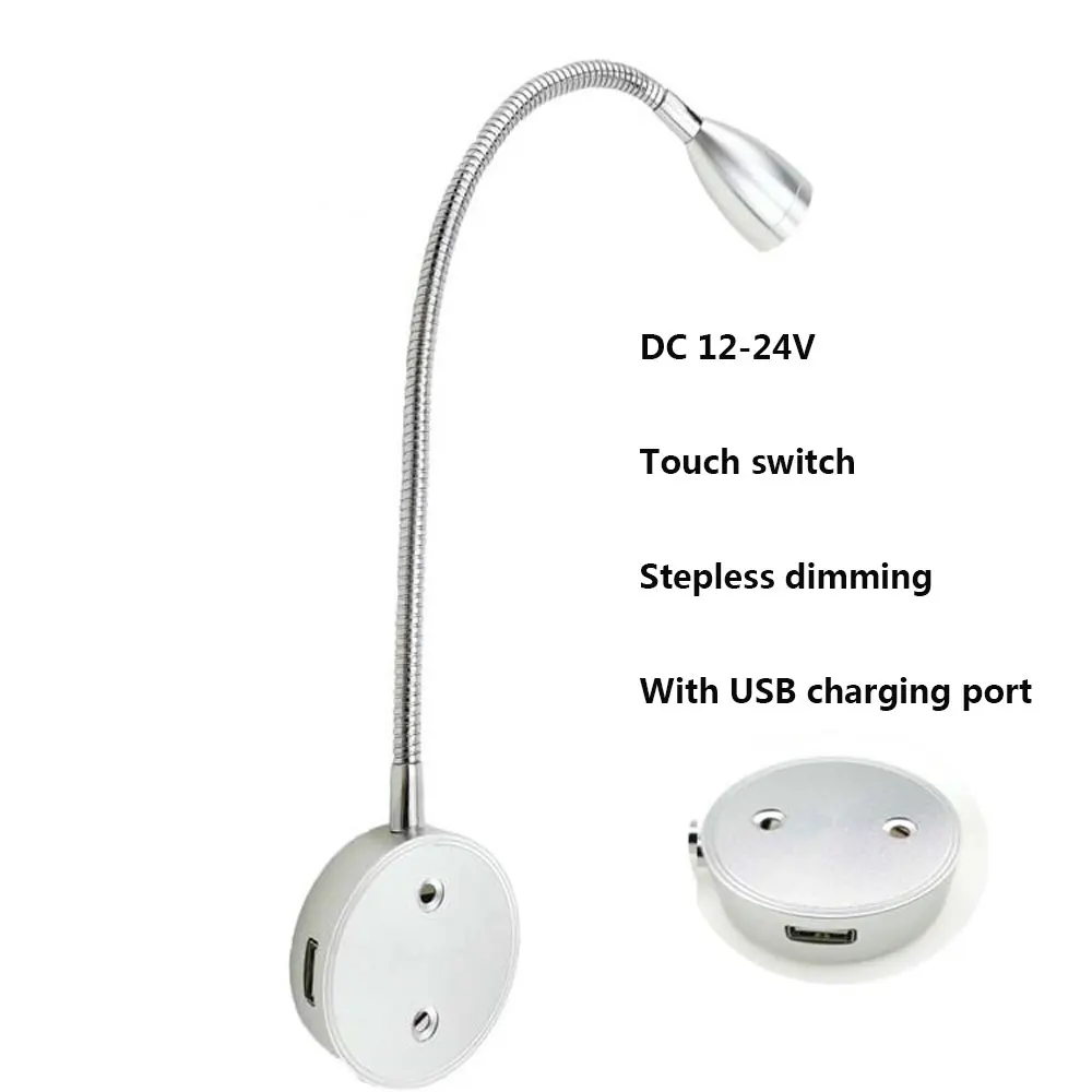 Сенсорный бесступенчатый светодиодный настенный светильник с затемнением USB Перезаряжаемый порт DC 12V 24V шланговый светильник для отеля, спальни, кухни, прикроватный светильник для чтения