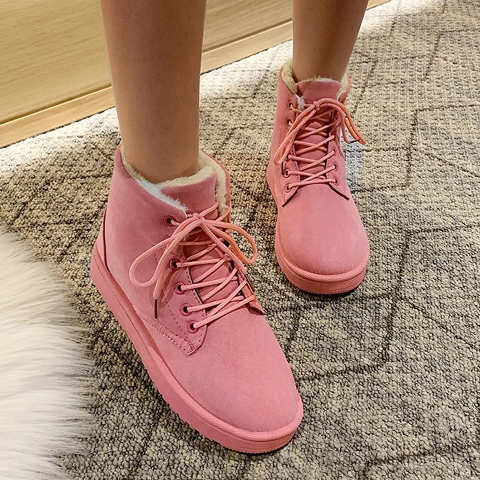 Женские ботинки, зимняя обувь, однотонные ботильоны на шнуровке, повседневные ботинки с круглым носком, теплая зимняя обувь без шнуровки на плоской подошве для женщин