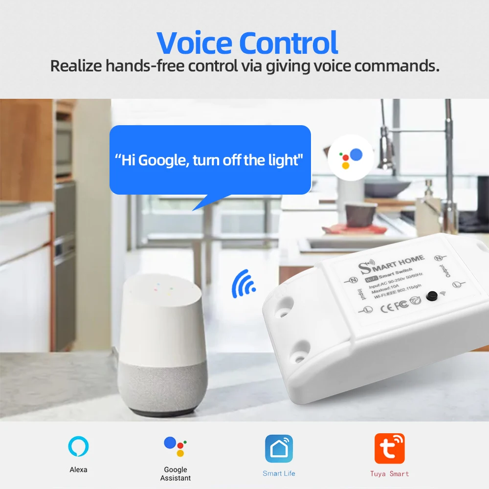 Tuya 10A Интеллектуальный переключатель Wi-Fi 2,4 ГГц Беспроводной ...