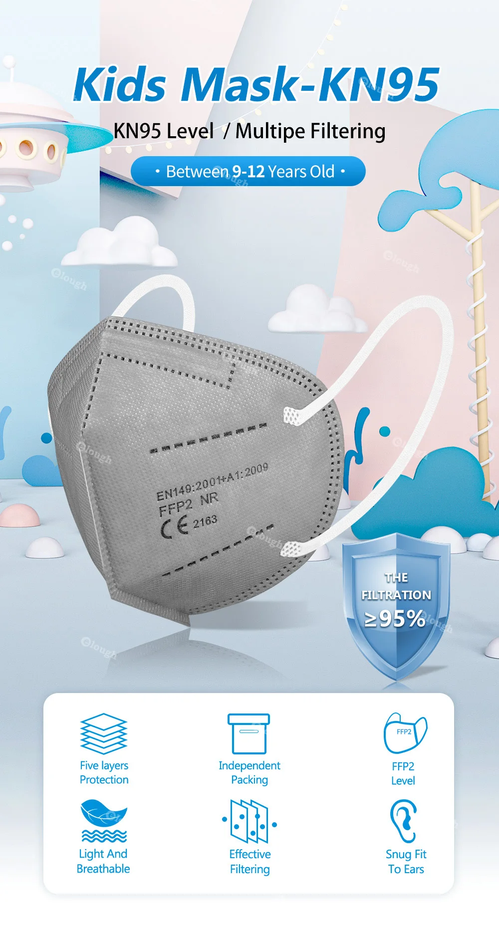 Детские маски, 5 слоев, CE FFP2mask, FFP 2