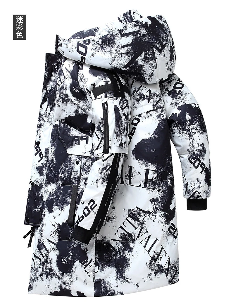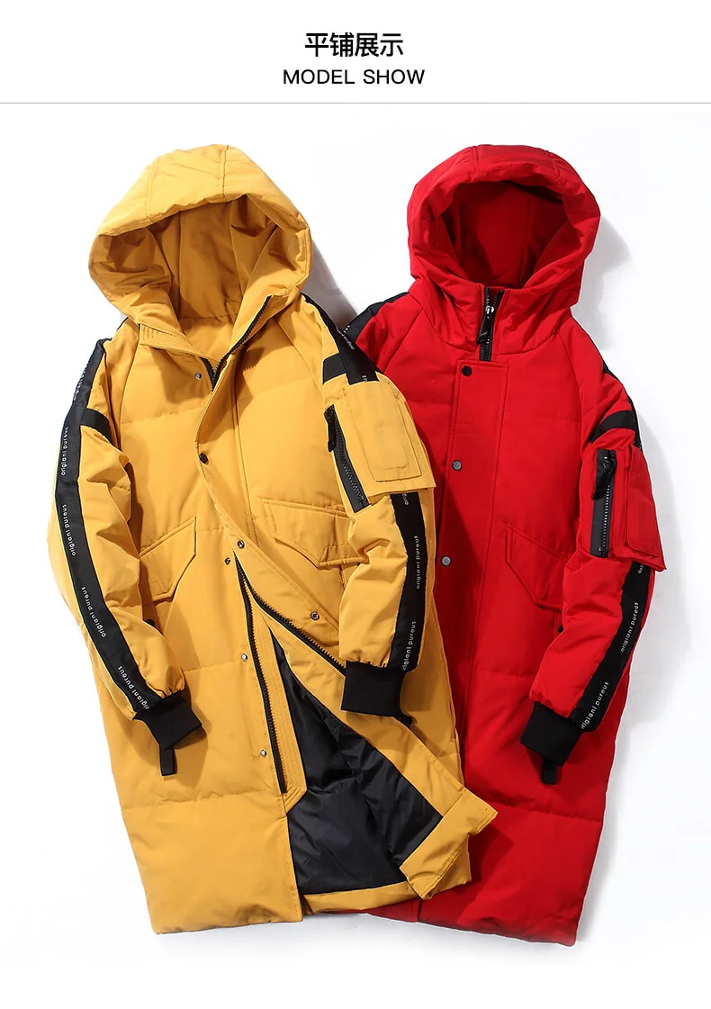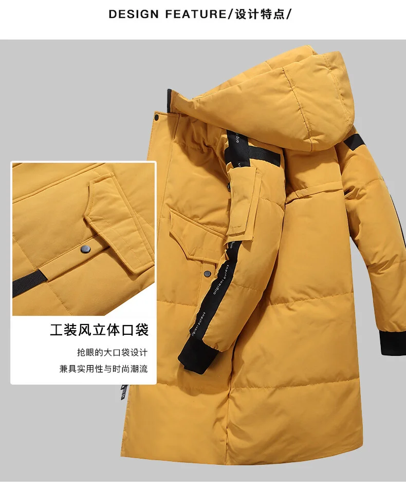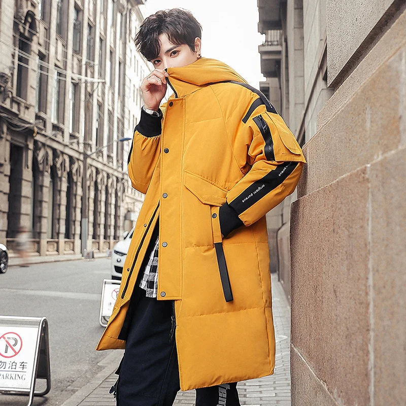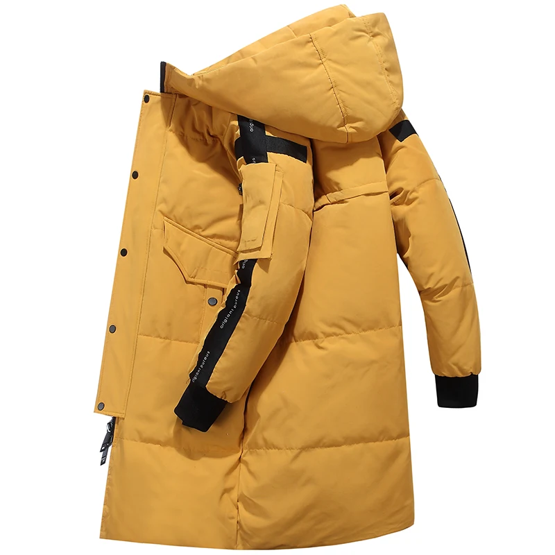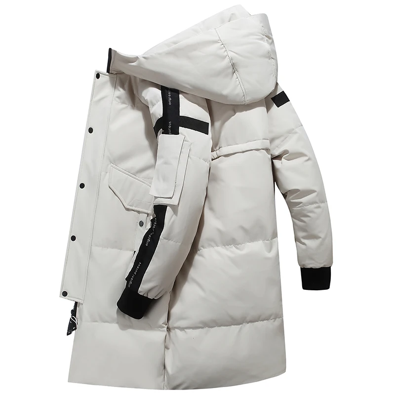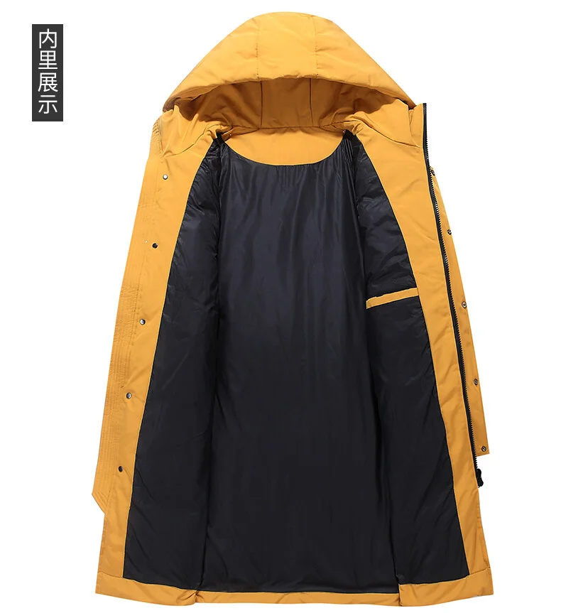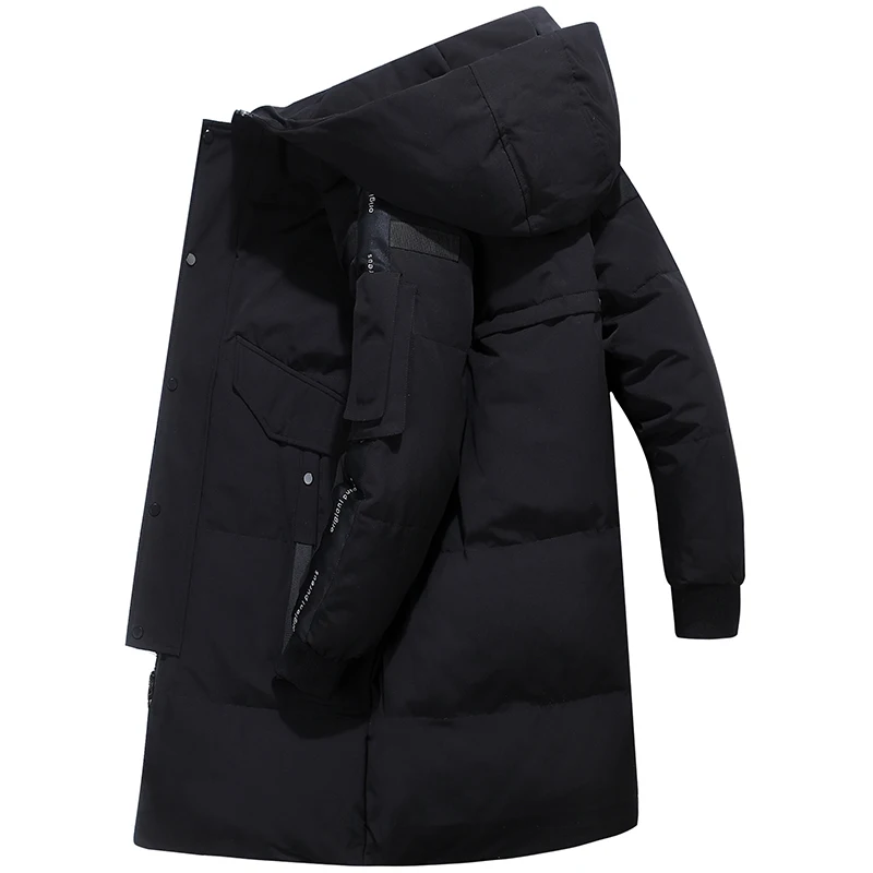 Мужской длинный пуховик с капюшоном, утепленный пуховик с защитой от ветра, зима 2021