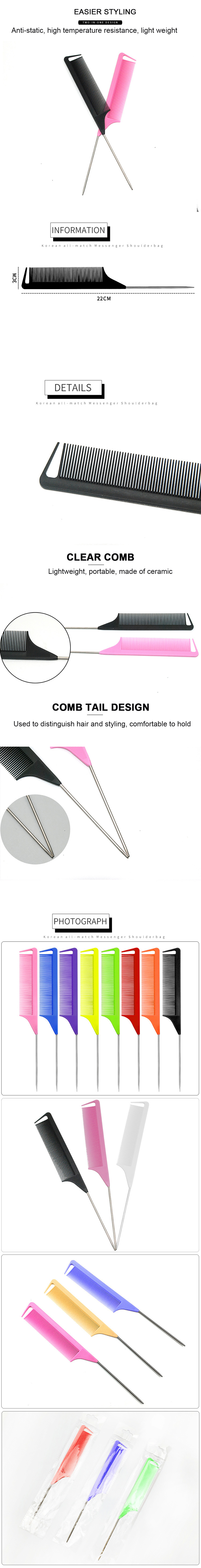 Профессиональная расческа для хвоста для волос, салонная Расческа для стрижки, Стайлинг из нержавеющей стали, черная тонкая шпилька, антистатические стильные крысиные инструменты