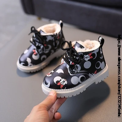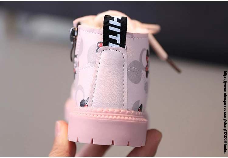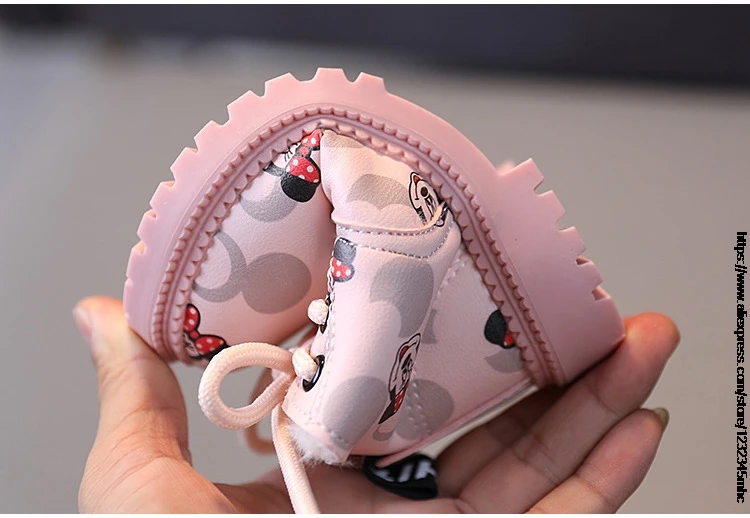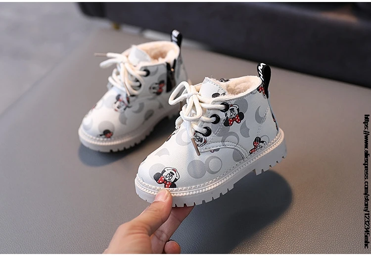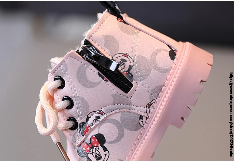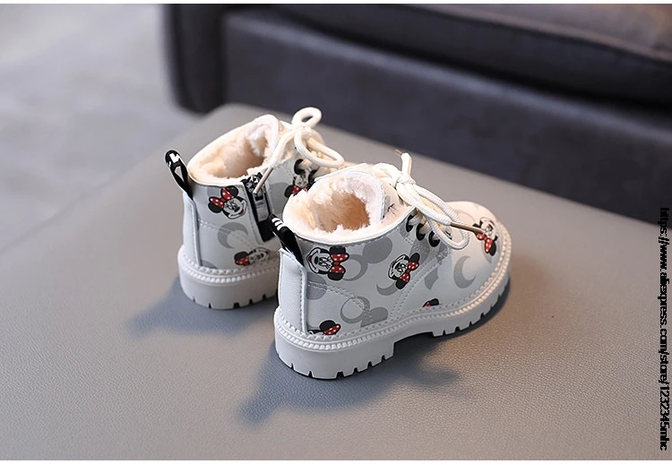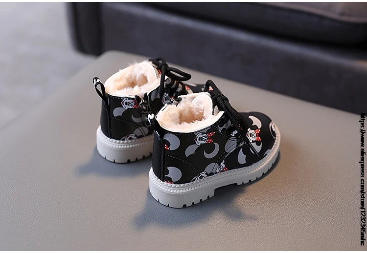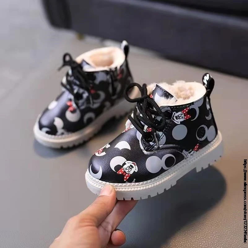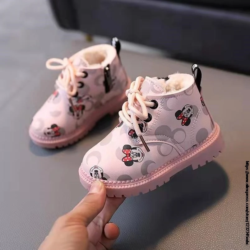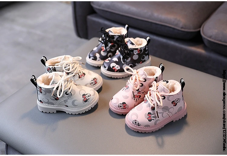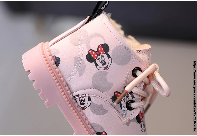 Детские зимние ботинки Disney для девочек, теплые хлопковые сапоги с Микки Маусом и Минни, повседневная спортивная обувь с мультяшным рисунком
