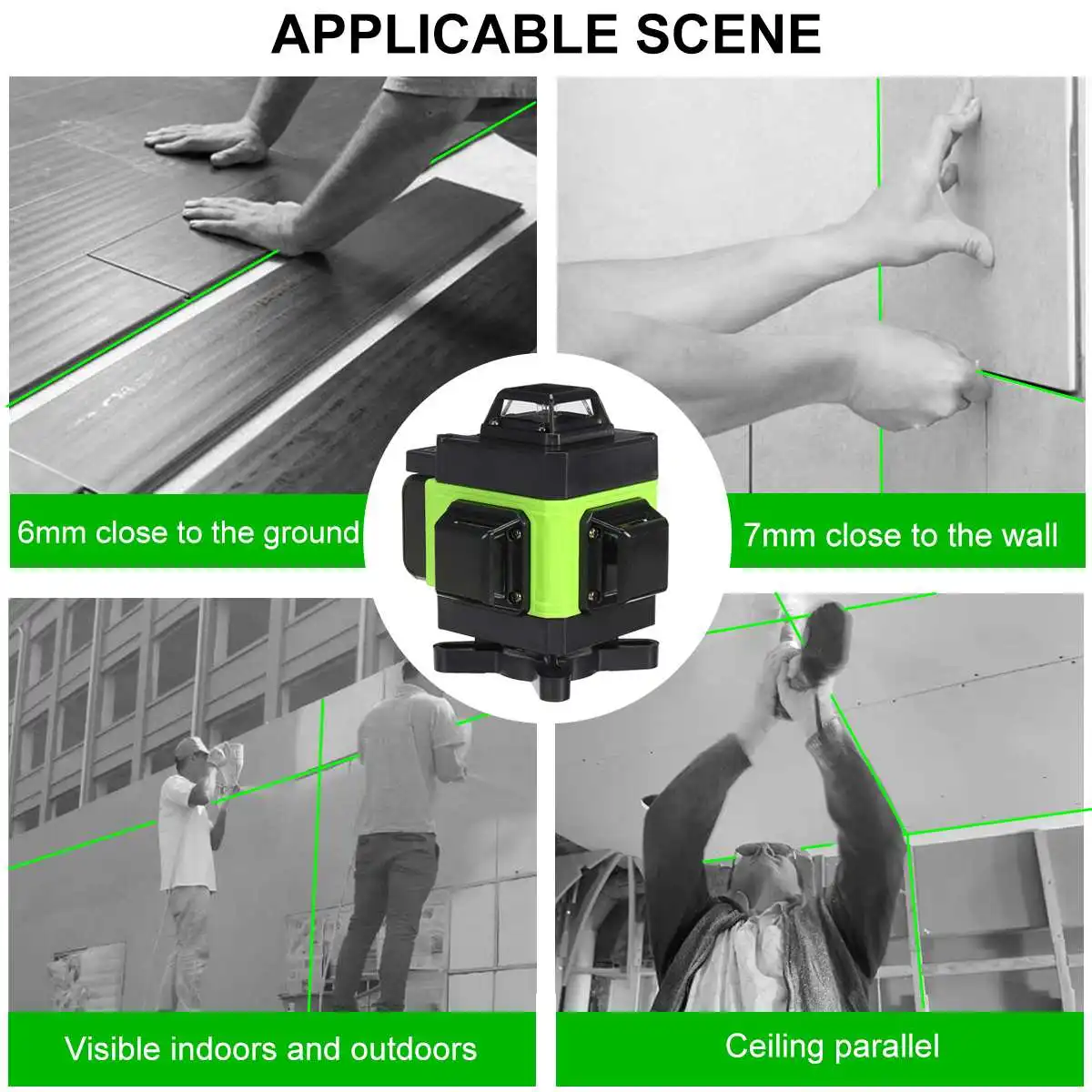 Особенности:● 4D 16 линейный облучение, 360 ° без мертвого угла.● Внутренний и наружный универсальный, высокая яркость зеленый, внутри и снаружи четко, Дальняя проекция расстояния, высокая Лазерная высота, четкие линии.● Дизайн сенсорного экрана, управление сенсорным экраном, более удобное. Точное измерение и более удобное в использовании.● Crashworthy и анти-стук, crashworthy и анти-стук.● Международный стандарт IP54 Водонепроницаемый и пыленепроницаемый, многократная защита, длительный срок службы в суровых условиях.● Литиевая батарея большой емкости, прочная● Автоматическая функция автоматического выравнивания ± 3 °. Звуковое предупреждение при превышении диапазона автоматического выравнивания.