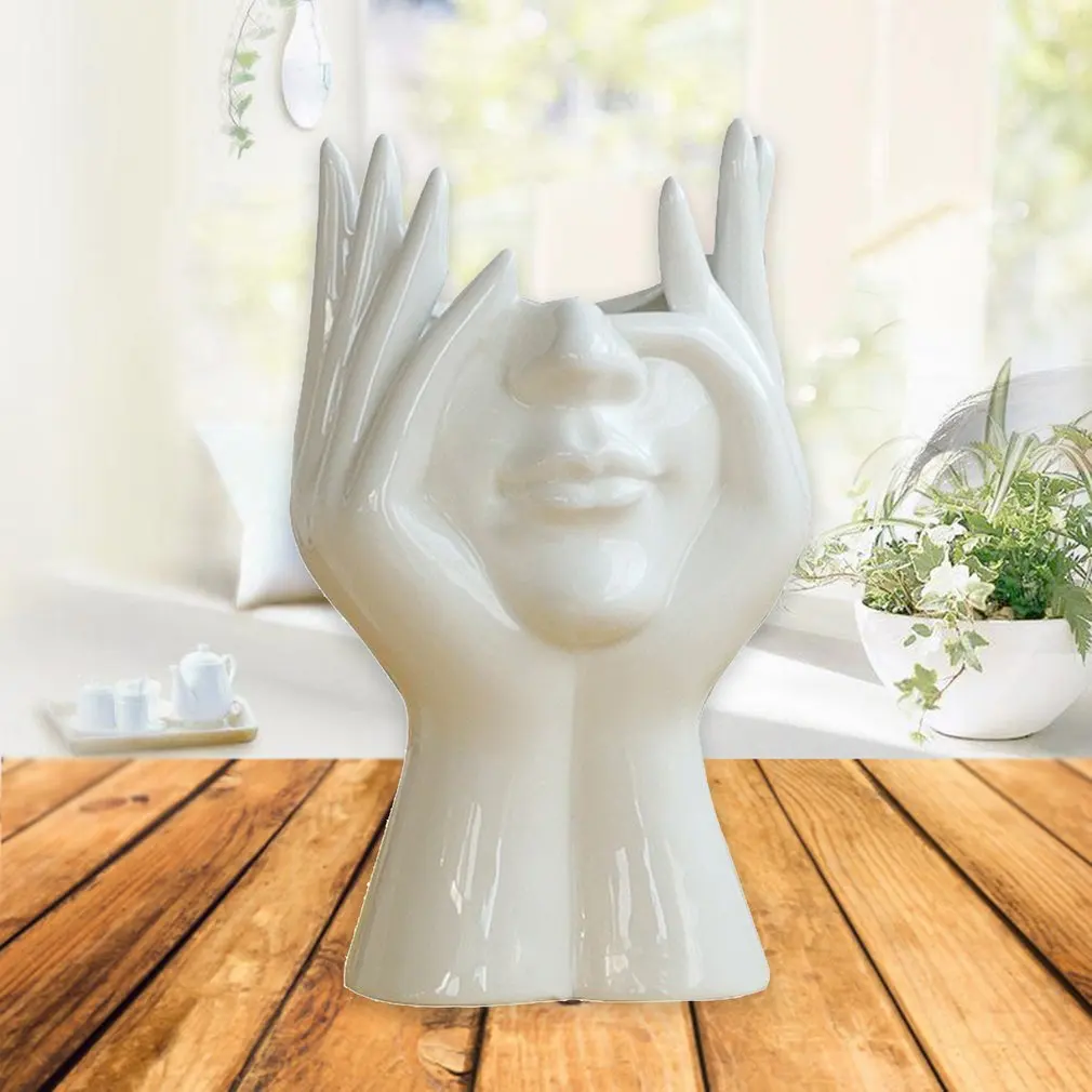 Новинка 2021, керамическая креативная скульптура, ваза для цветов с человеческим лицом, искусство, головы человека, абстрактные растения, цветочный горшок, композиция для домашнего декора
