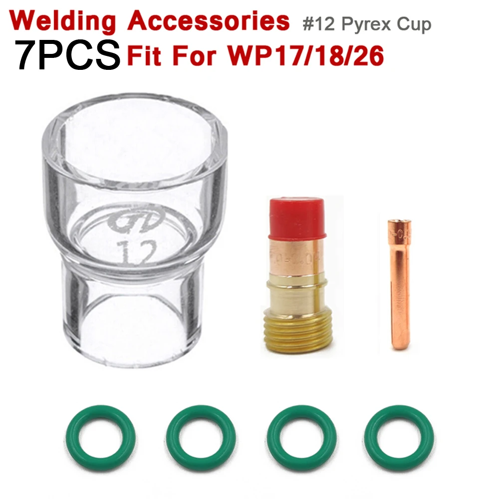7 шт. TIG сварочный фонарь для газовых линз #12 Pyrex Стеклянная чашка набор контактных наконечников для WP-17/WP18 WP26 Запчасти для инструментов термостойкая чашка