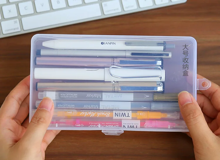 Yisuremia 1 шт., прозрачный органайзер для стола, канцелярские наклейки, коробка для хранения, пенал, чехол, пластиковая классификация, контейнер, коробка