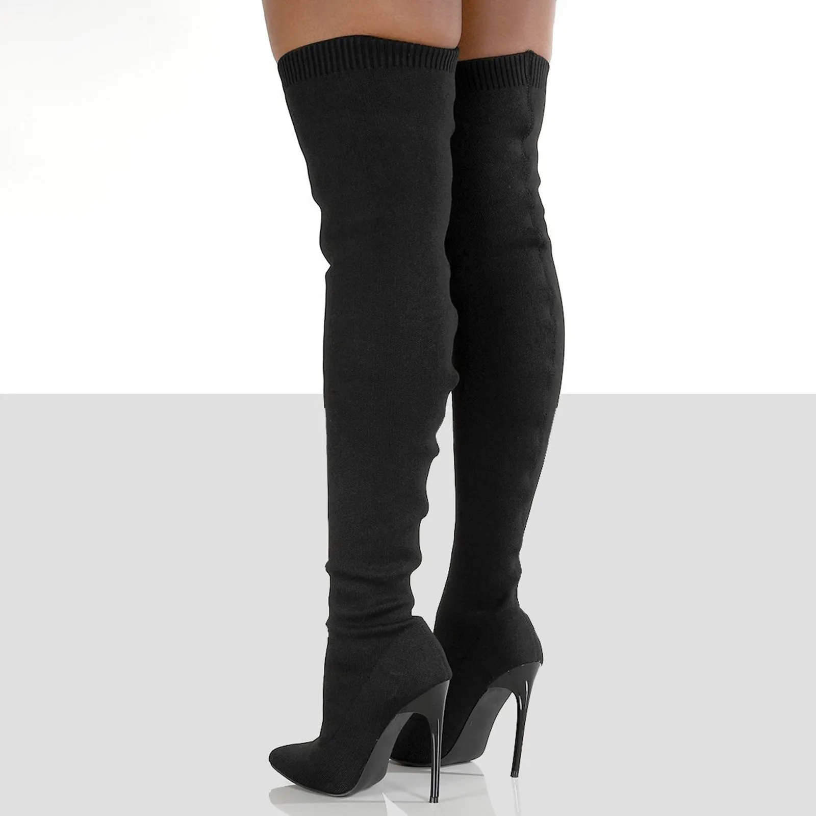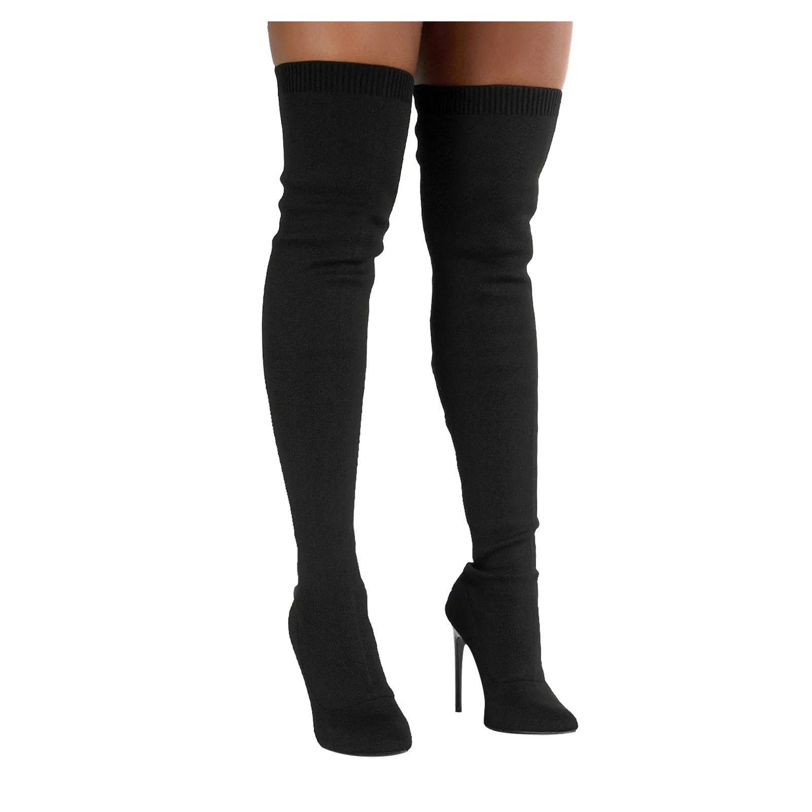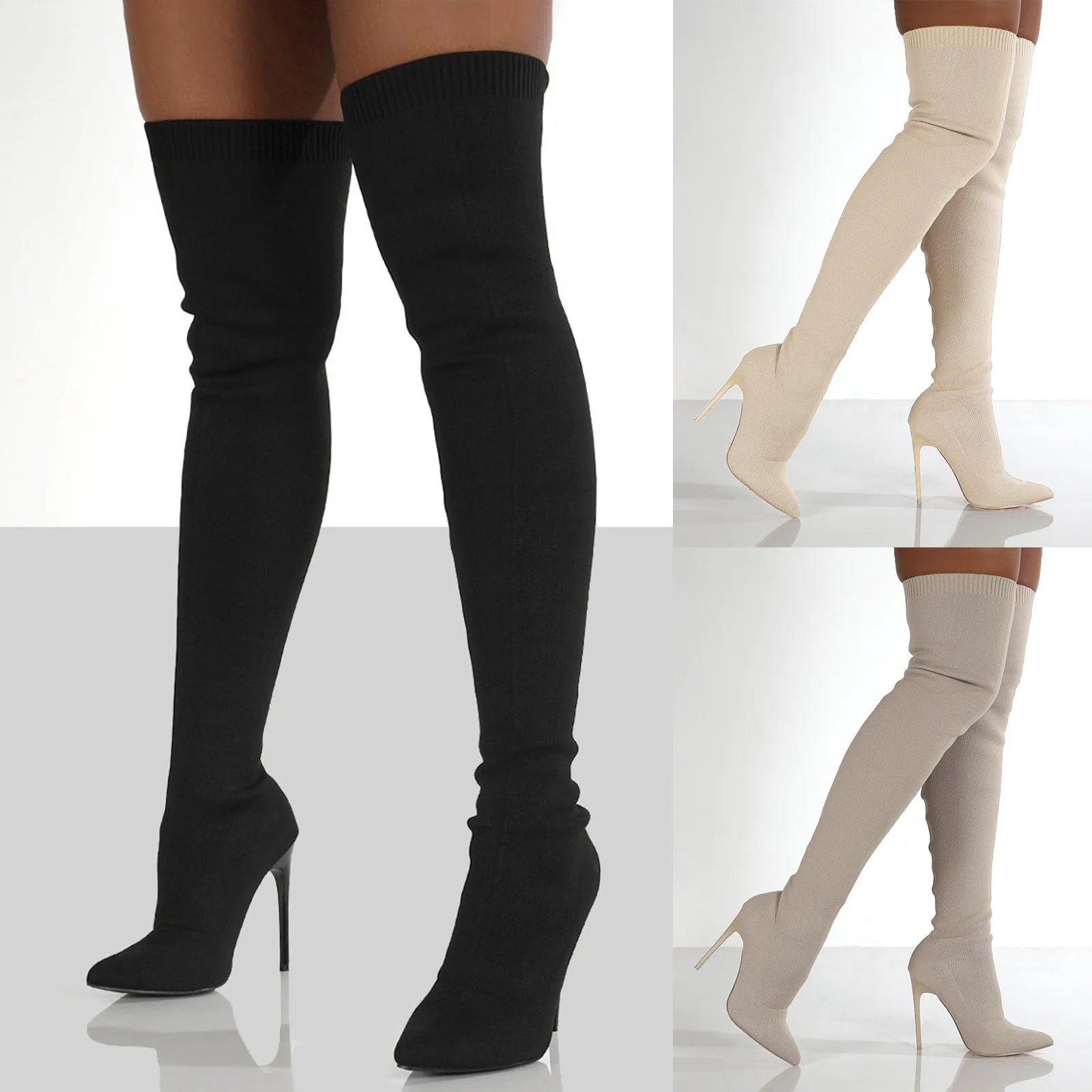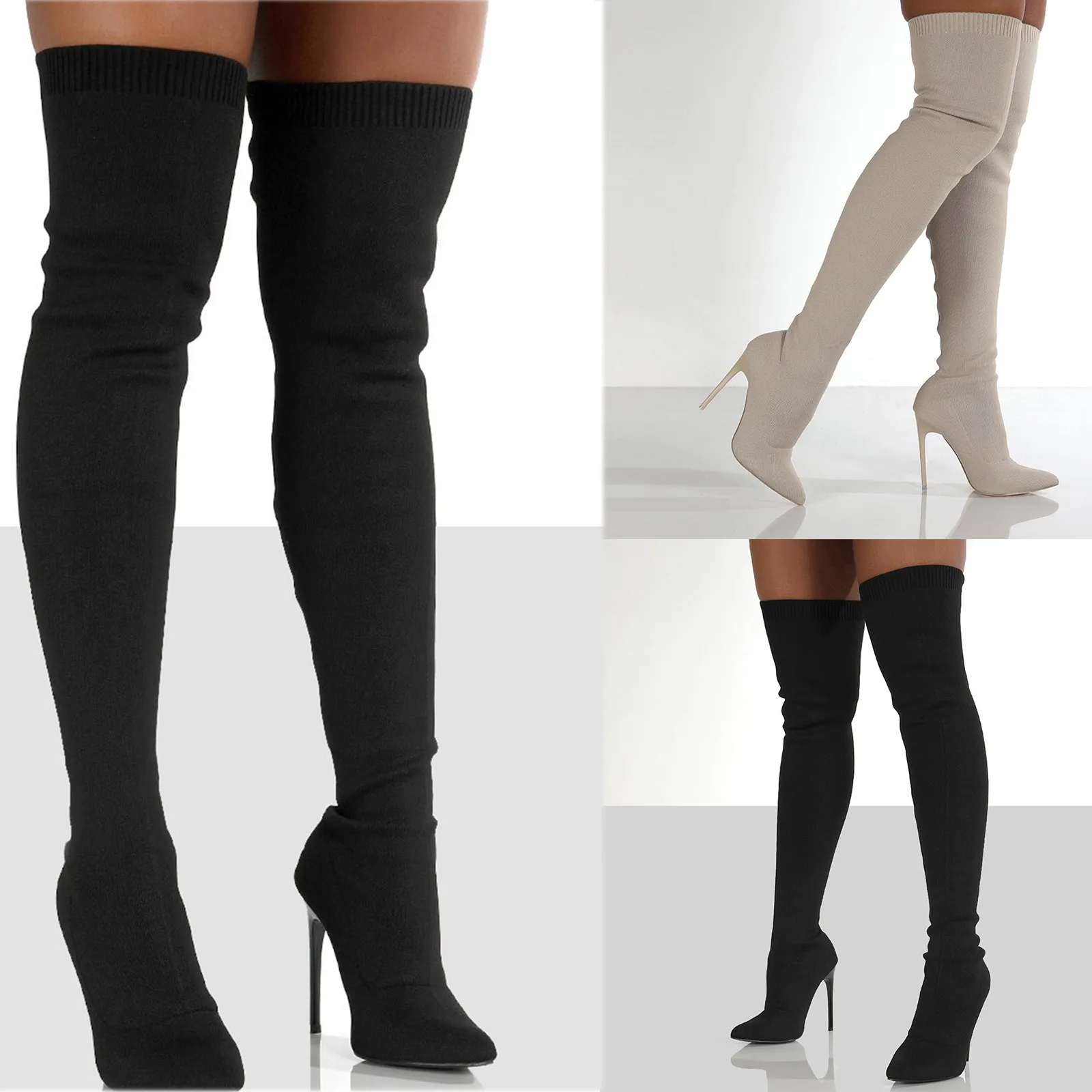 Женские эластичные сапоги, сезон осень-зима, теплые сапоги выше колена с хлопковой вставкой, Женская эластичная привлекательная обувь на высоком каблуке