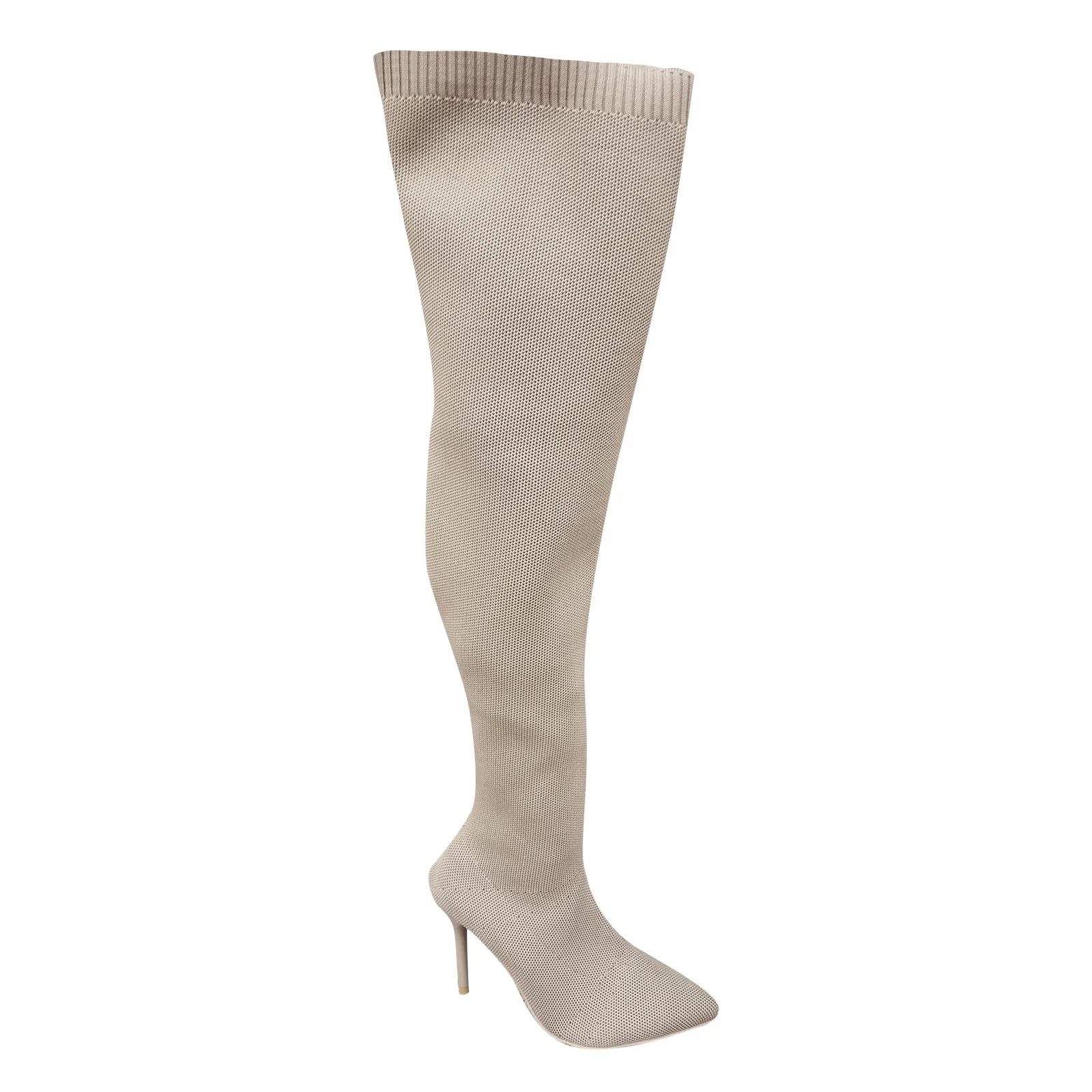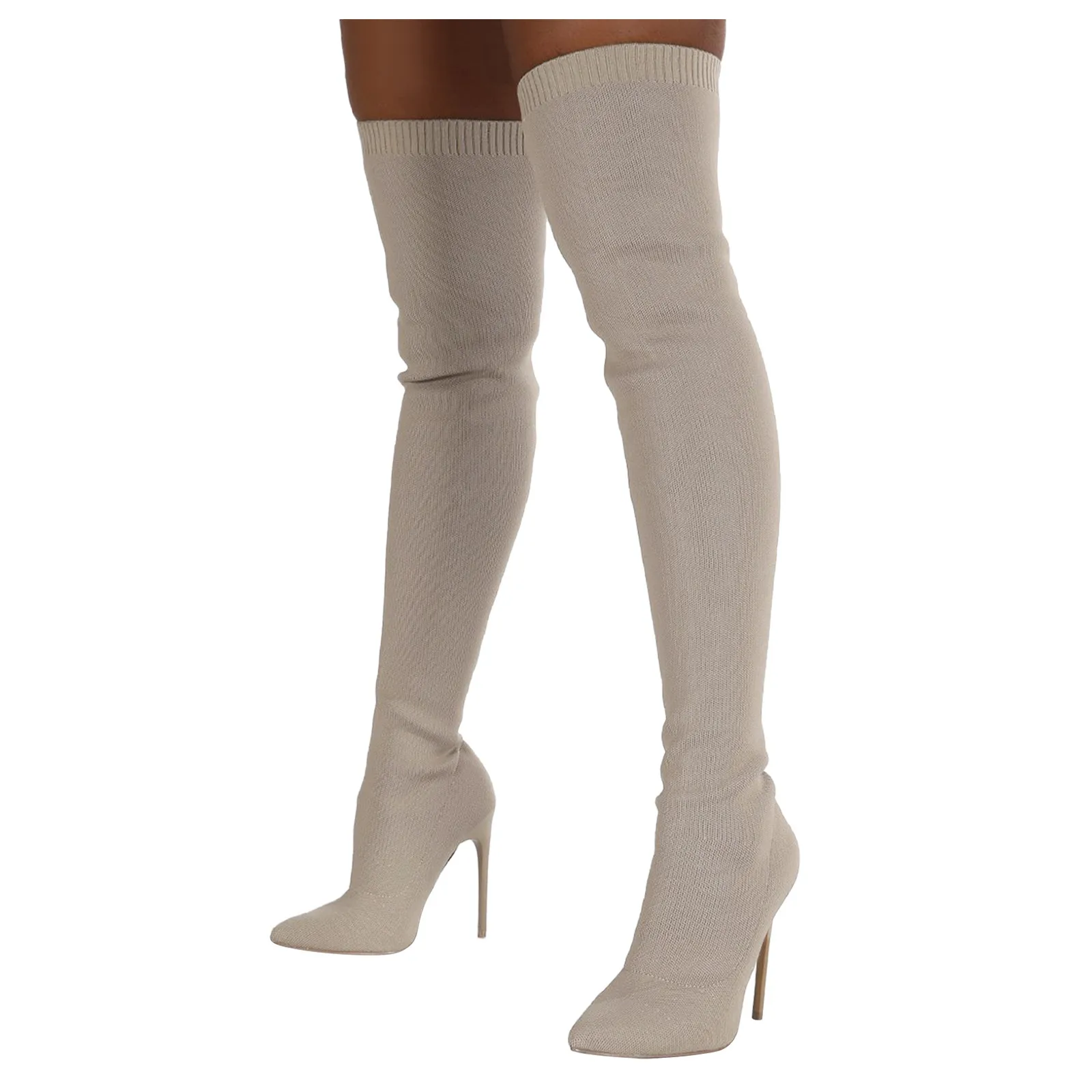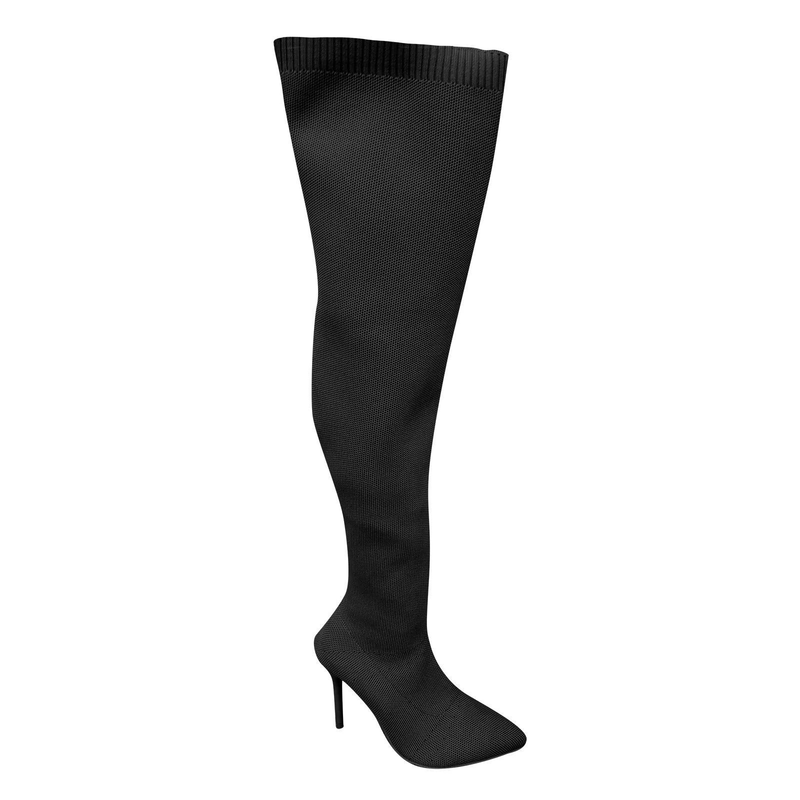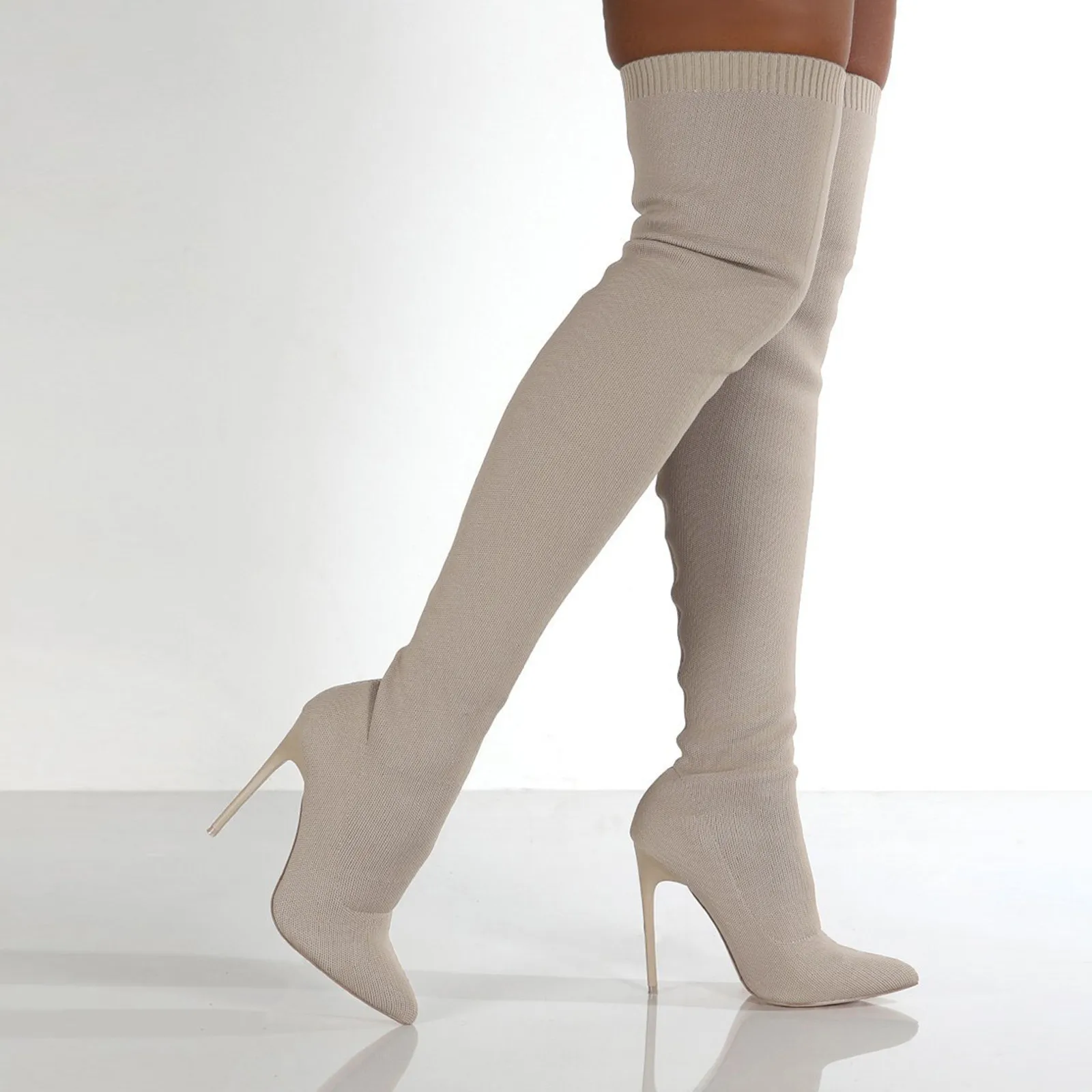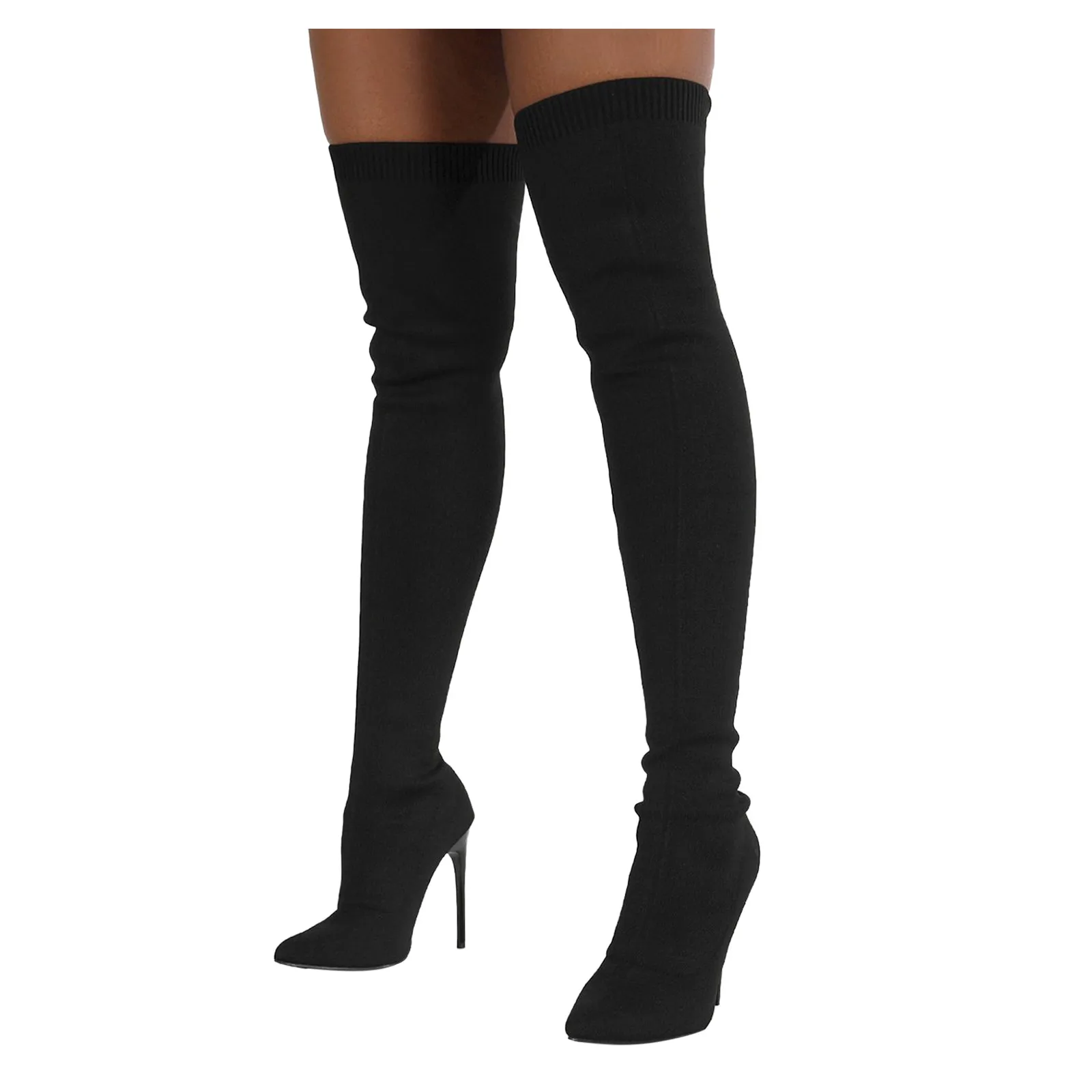 Женские эластичные сапоги, сезон осень-зима, теплые сапоги выше колена с хлопковой вставкой, Женская эластичная привлекательная обувь на высоком каблуке