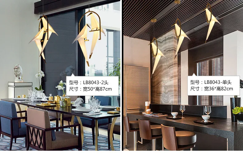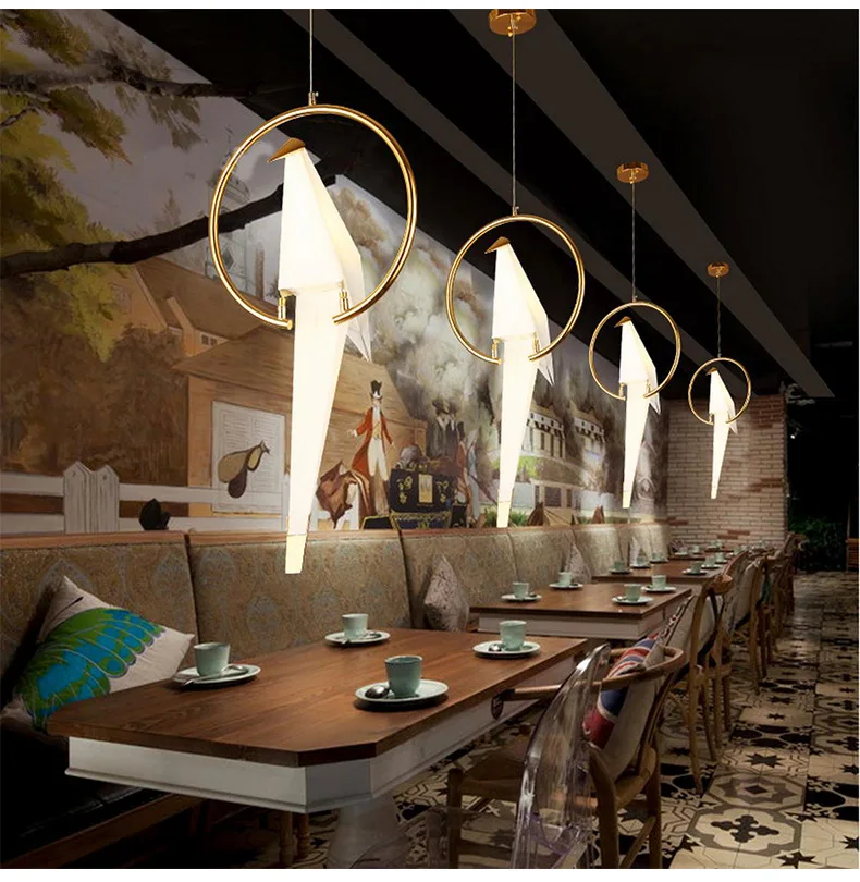 Современные подвесные лампы с бумажным журавлем и птицами, винтажны...
