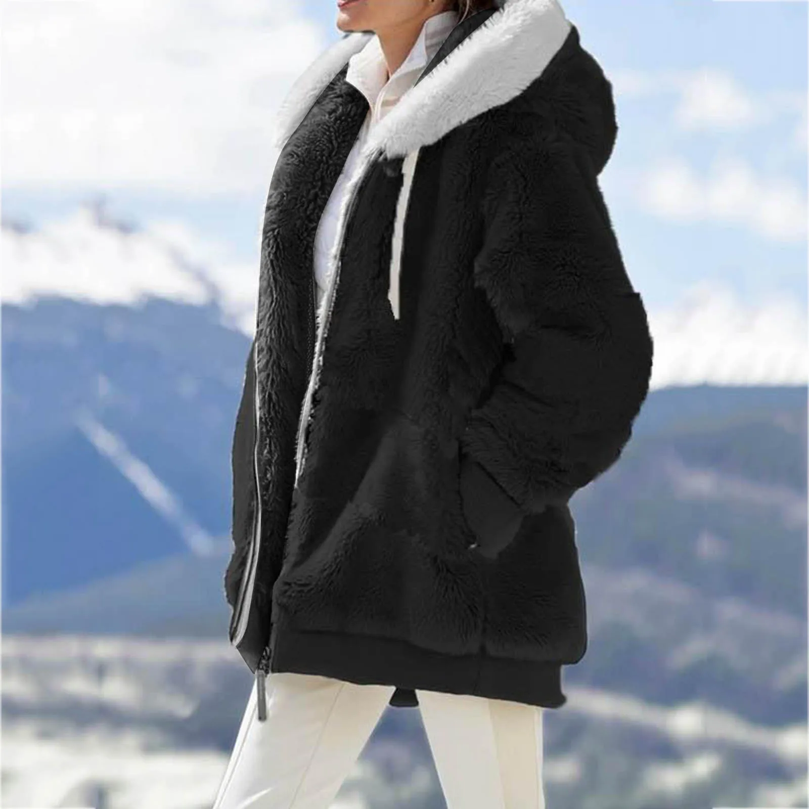 Женские плюшевые флисовые куртки с капюшоном, плюшевая парка с прос...