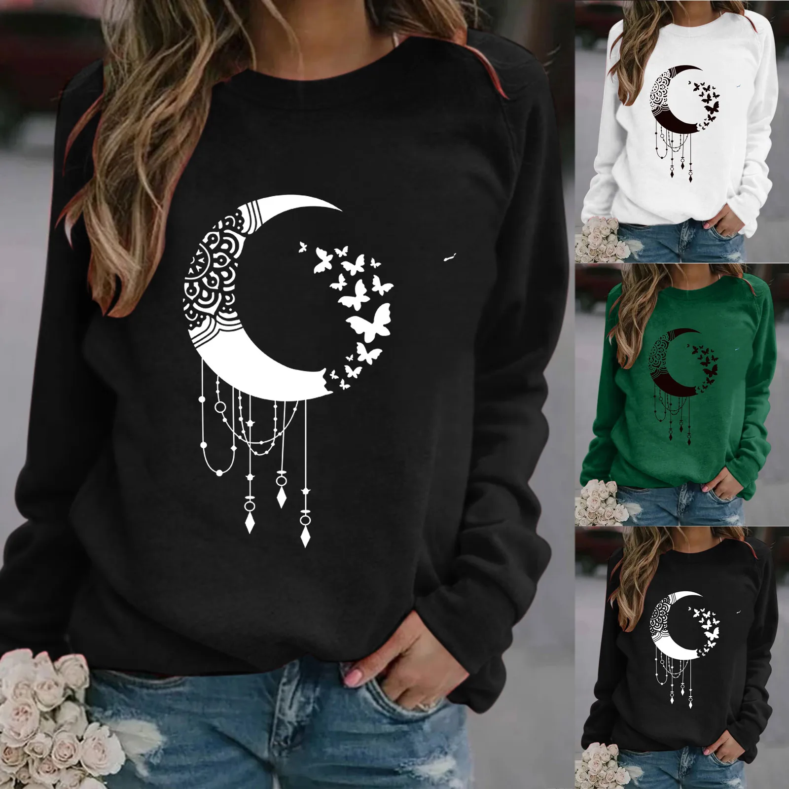 Худи женское в стиле Харадзюку с изображением Луны и бабочек
