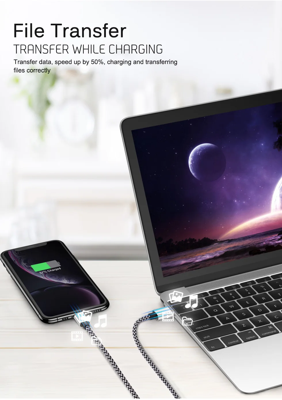 USB-кабель для iPhone, кабель для быстрой зарядки и передачи данных...