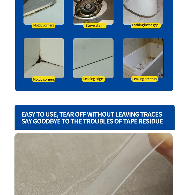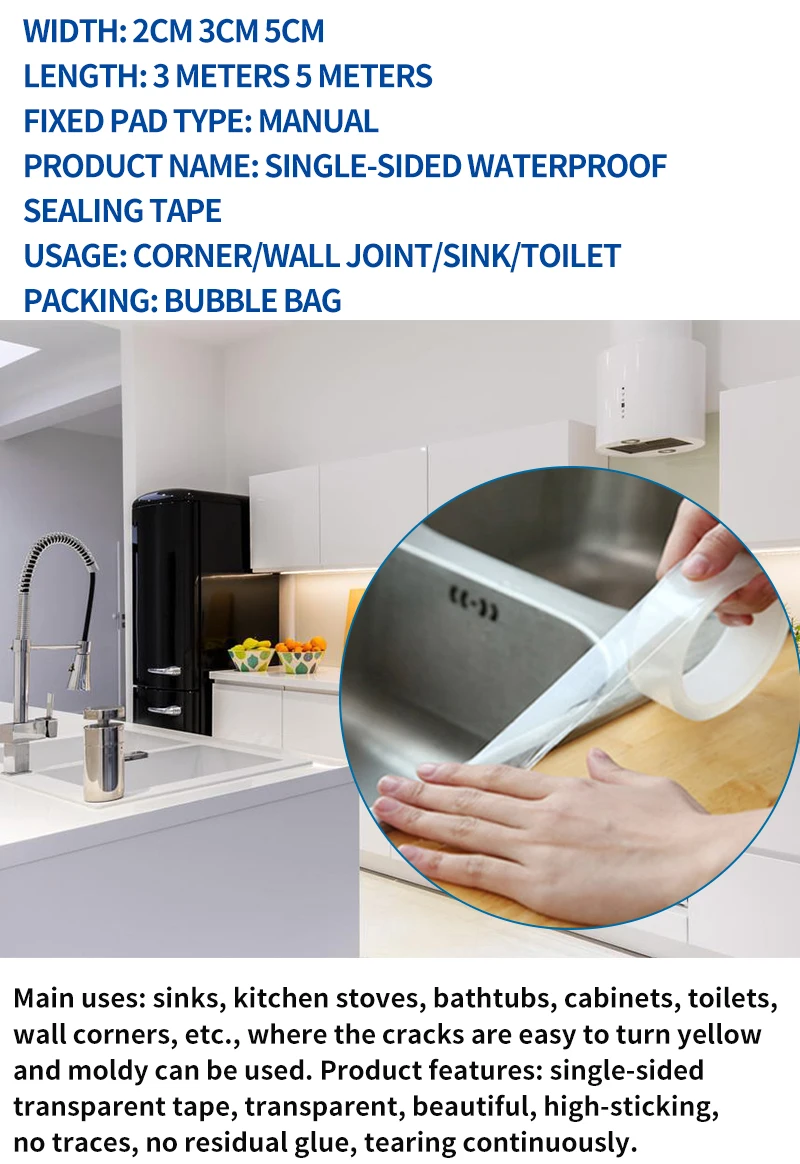 Водостойкая и непромокаемая нано-прозрачная лента для кухонной раковины, прокладка для туалета, самоклеящаяся водопроводная лента для бассейна
