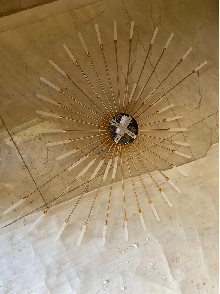 Люстра отлично смотреться,дошла целая но упаковка повреждена,продавцу надо лучше упаковывать . Продавцу ставлю*****