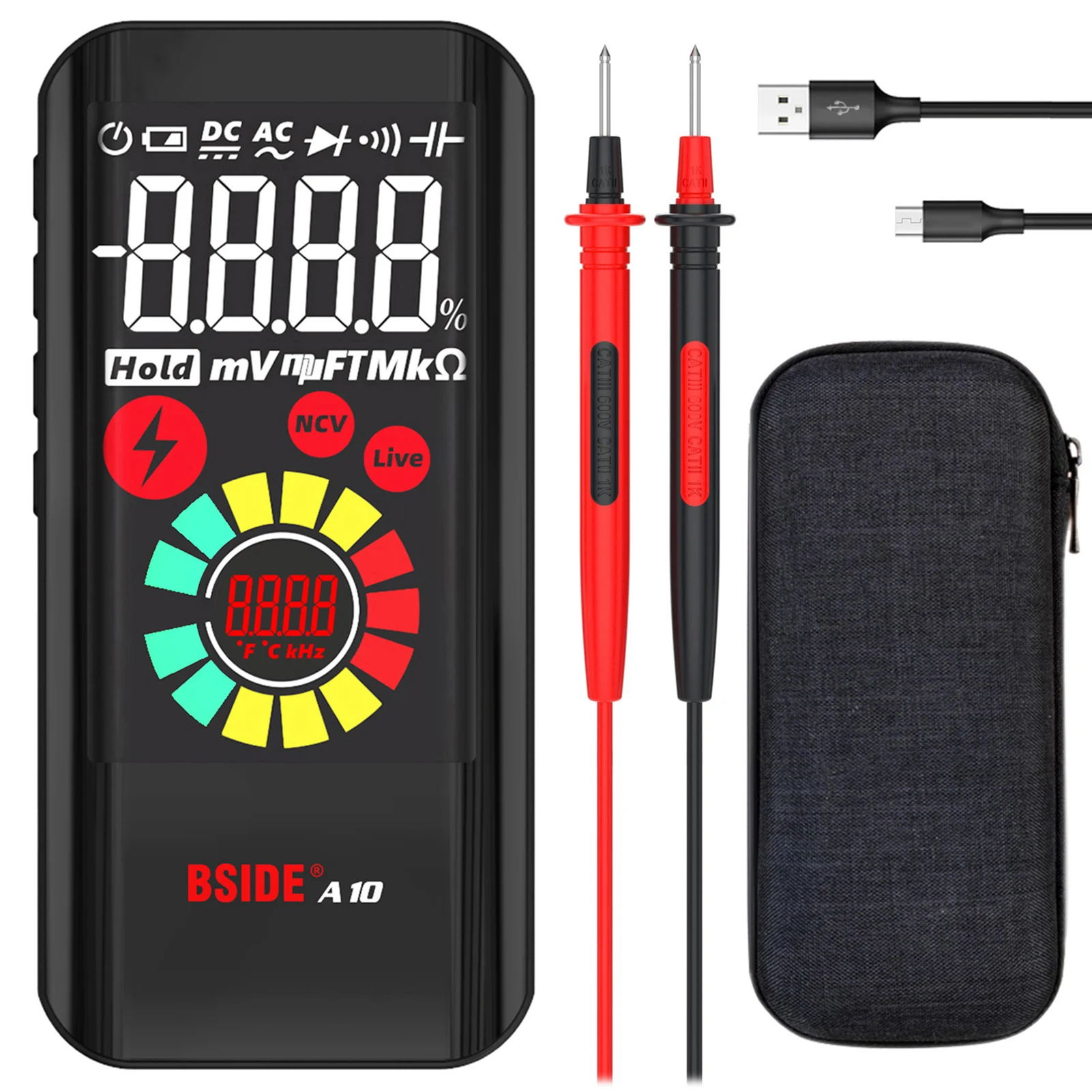 Цифровой мультиметр BSIDE A10, миниатюрный вольтметр-тестер с функцией измерения напряжения, сопротивления, емкости, частоты и диодов, ACDC