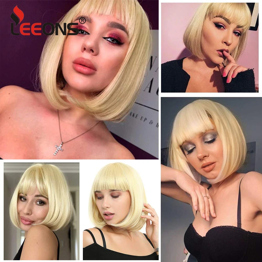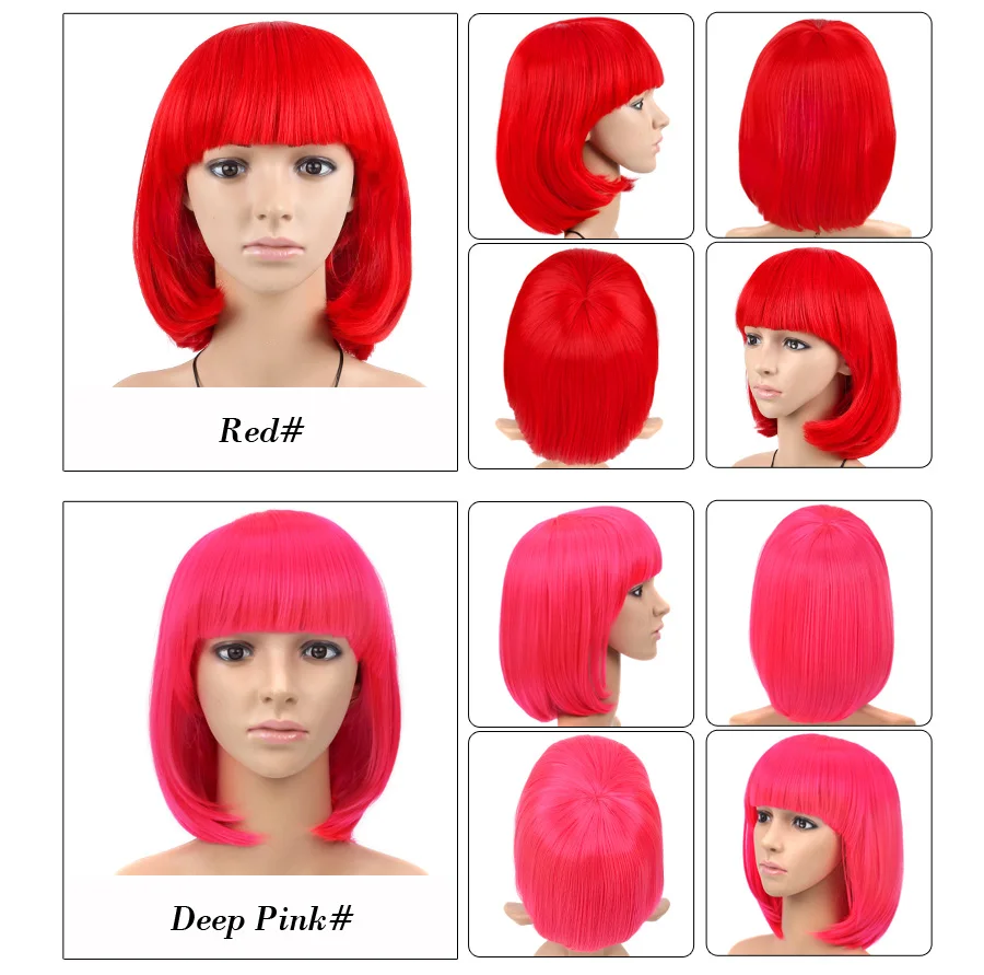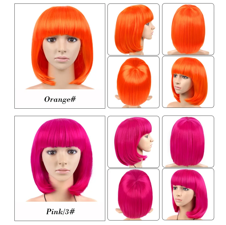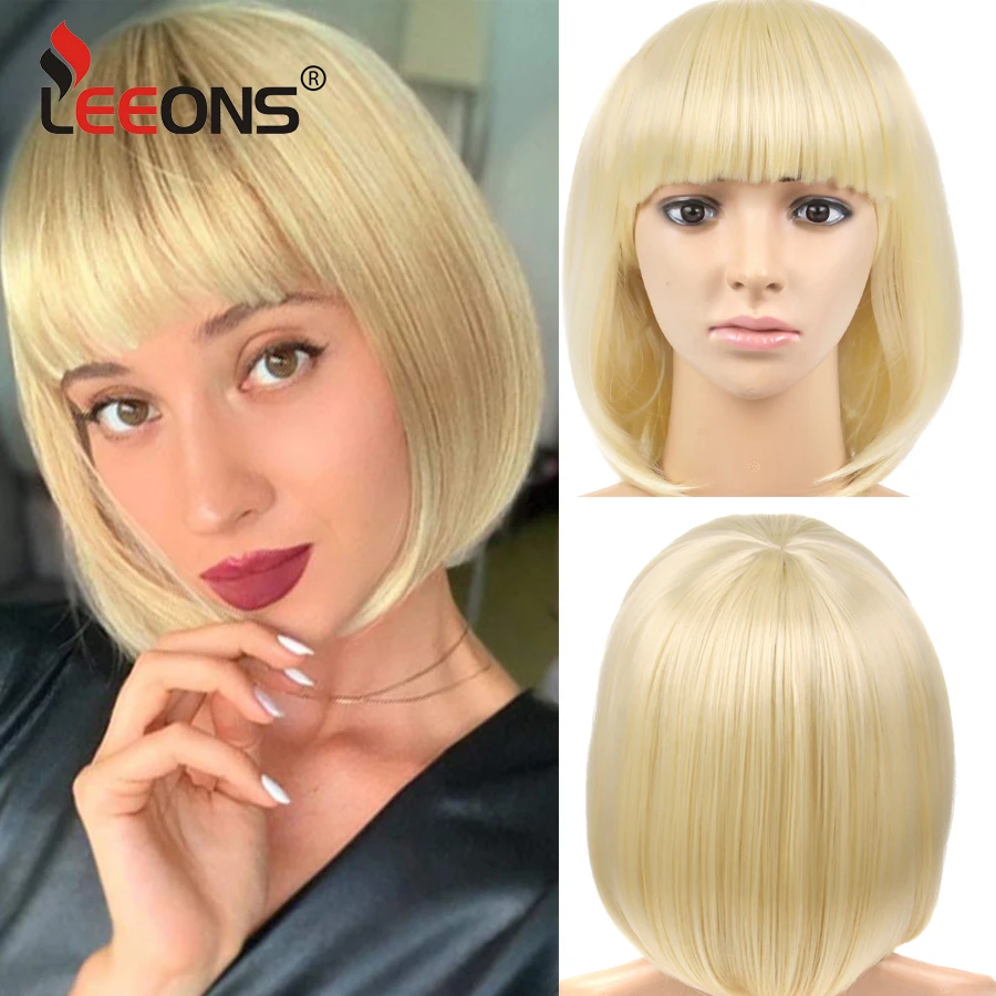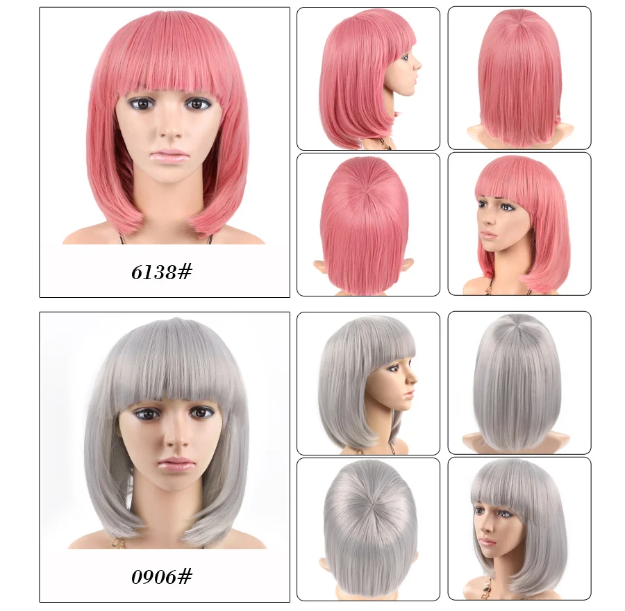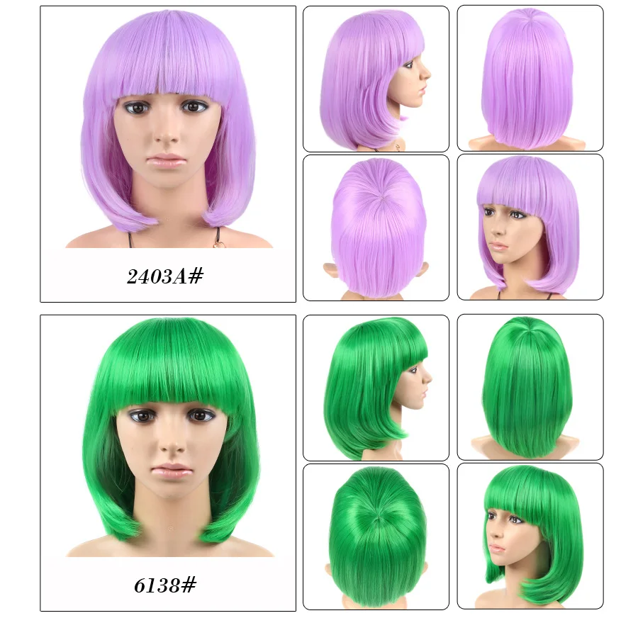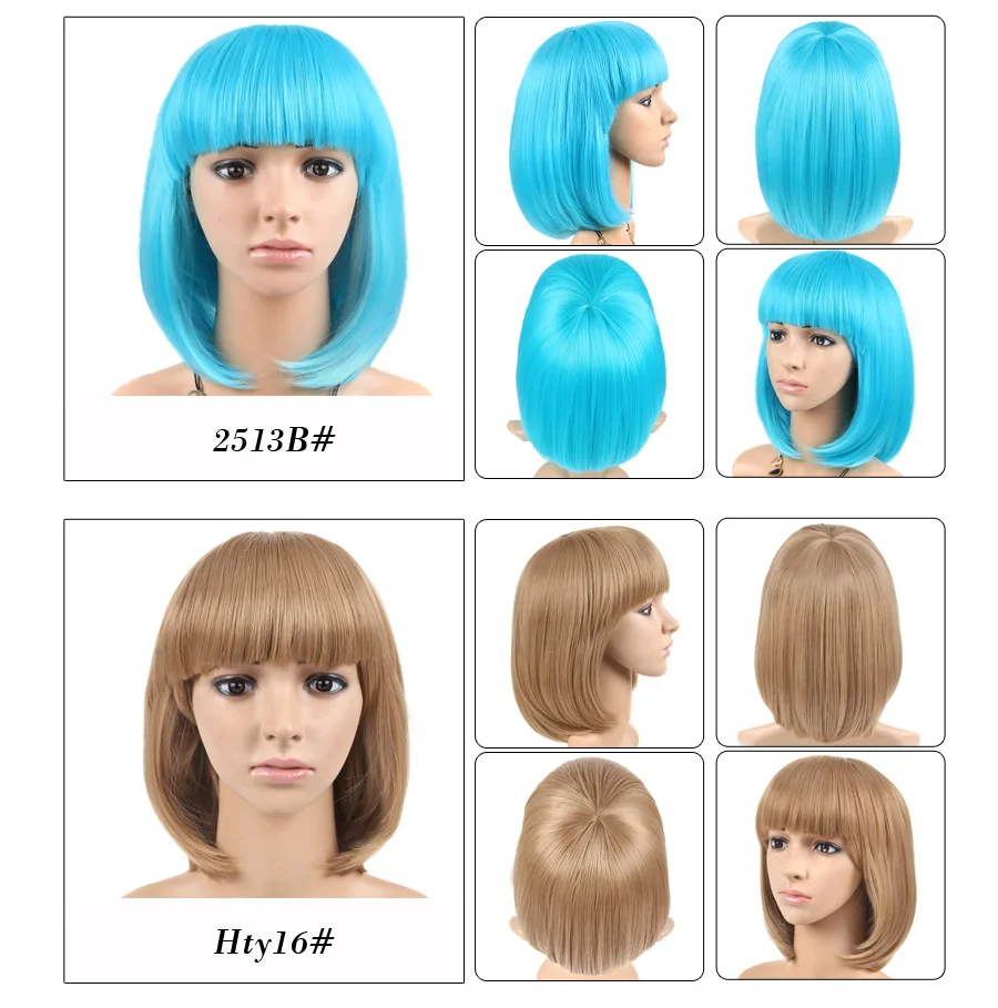 Синтетический парик блонд короткие парики боб с челкой прямые волосы парик для вечерние Косплей парики для женщин 12 дюймов красочные парики