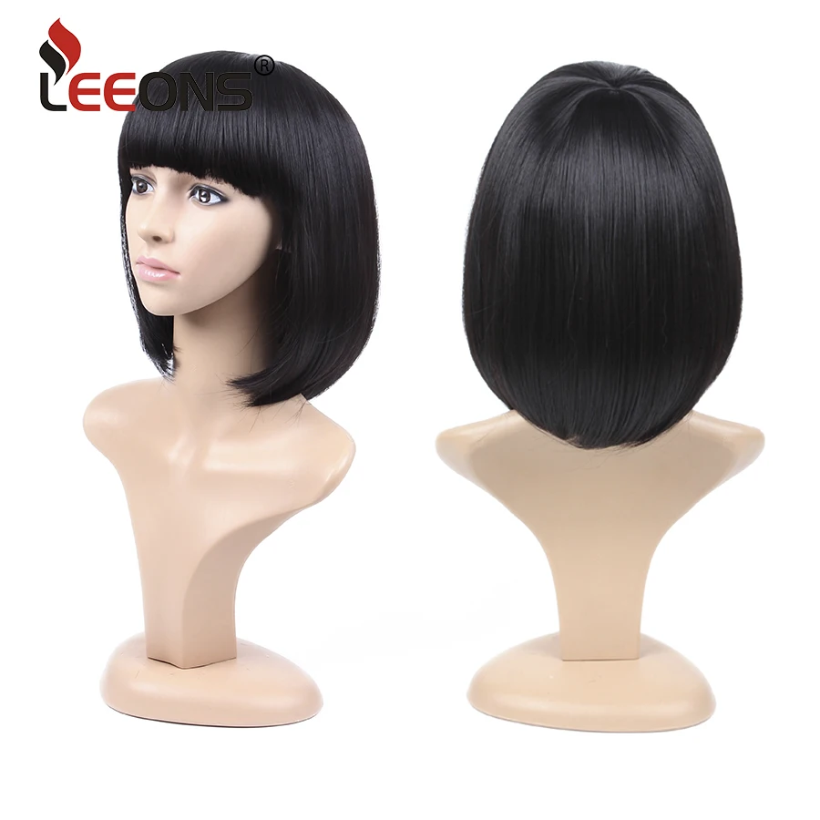 Leeons синтетический черный парик короткие бобы парики с челкой для...