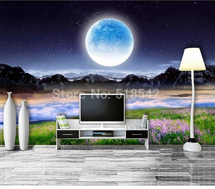 Объемные обои на заказ с изображением природы, ночного пейзажа, Луны для спальни, гостиной, телевизора, дивана, фона, большие настенные фрески, домашний декор