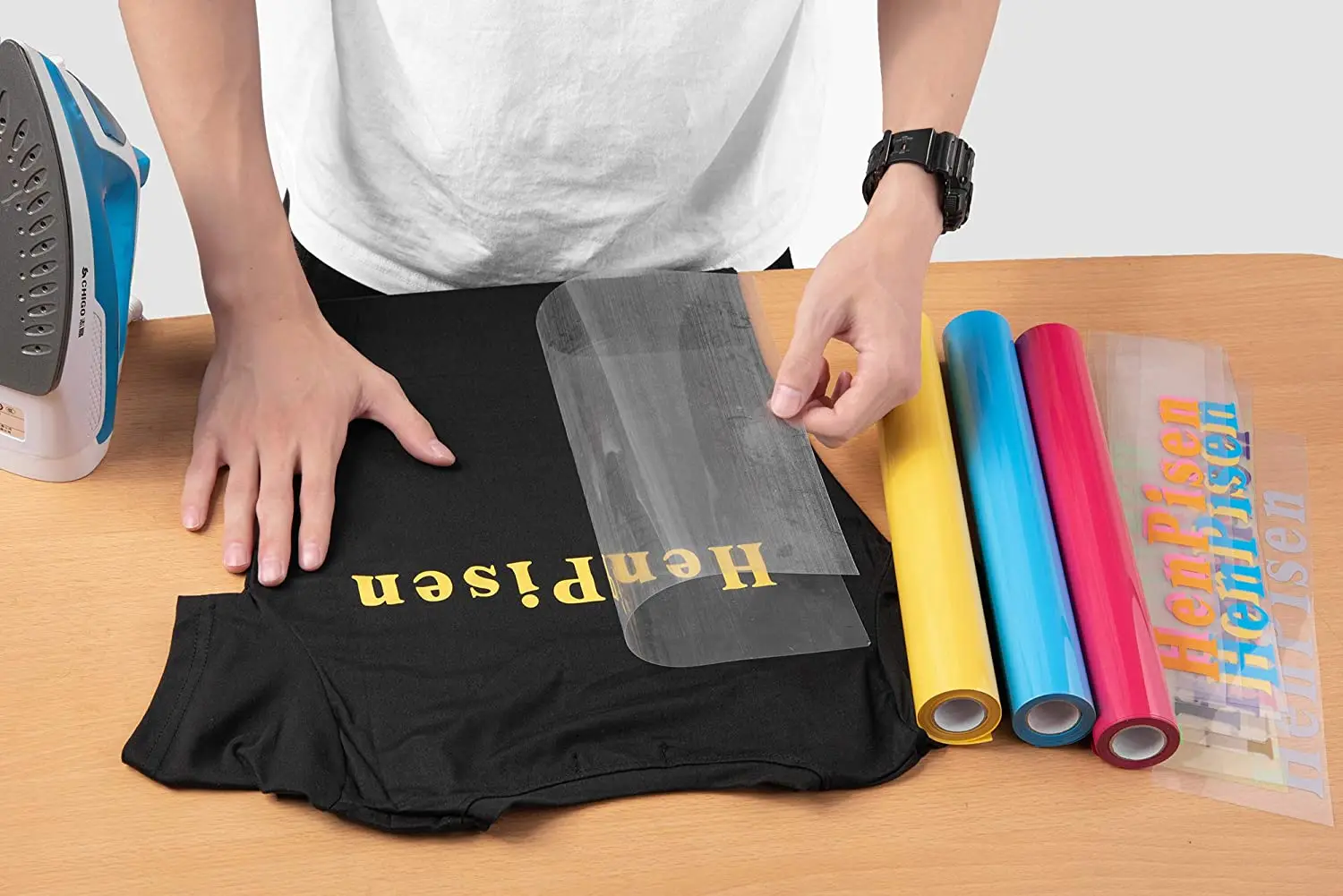 Материал, который поставляется на прозрачном несущем листе с отличной стабильностью размеров и очень хорошими характеристиками резки. Легко наносится лучше всего для Cricut Silhouette Cameo и всех других штампованных режущих машин, подходящих для утюга на передающих машинах, термопресс-машина даже для домашнего утюга.